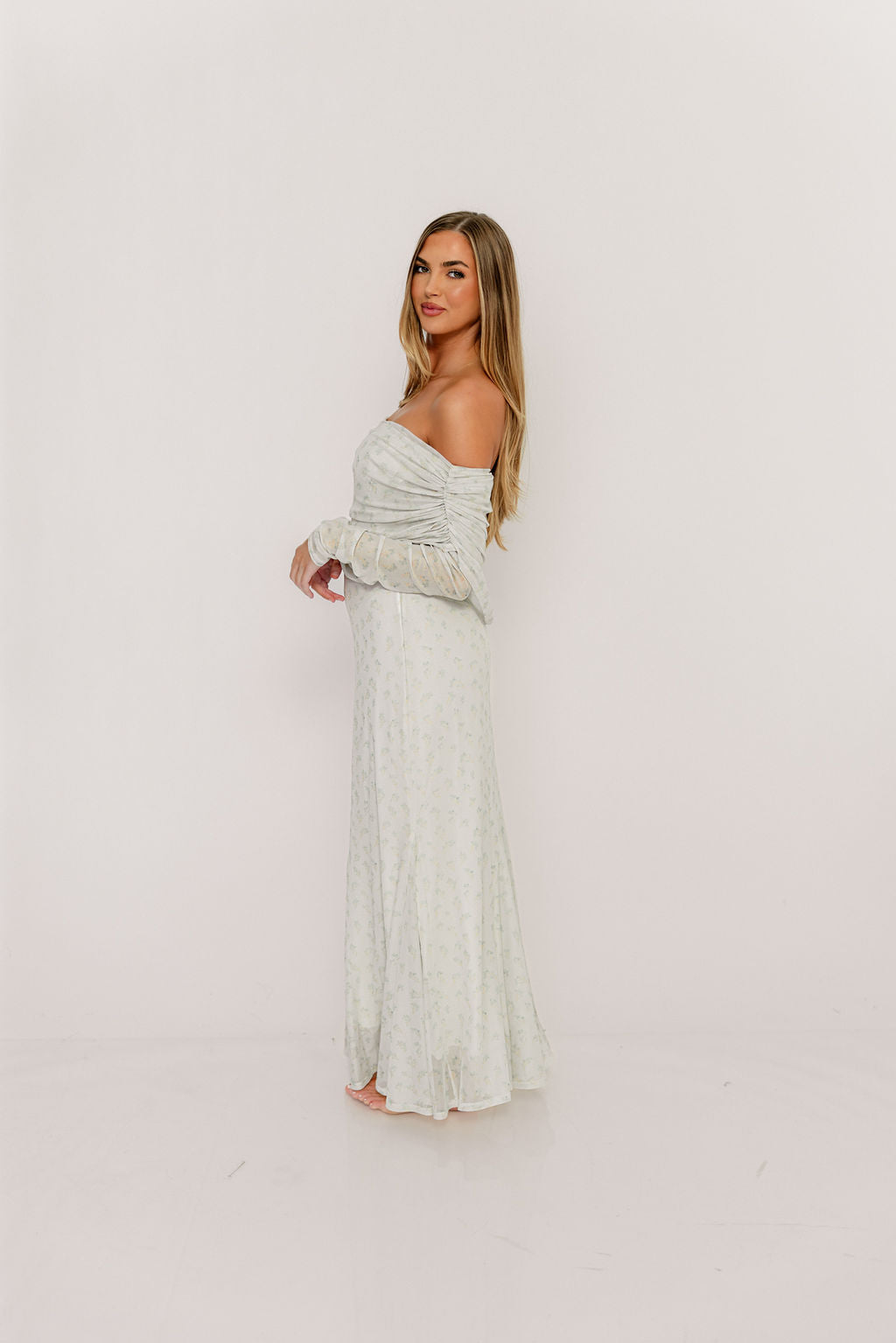 Christina Puffed Sleeve Maxi Dress in Cloud - Bump Friendly