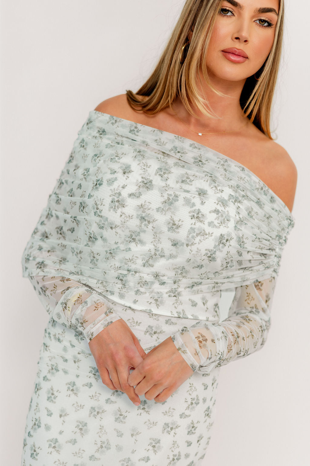 Delilah Maxi Dress with Train in Muted Sage Floral - Bump Friendly