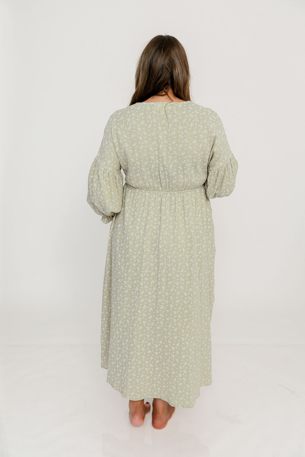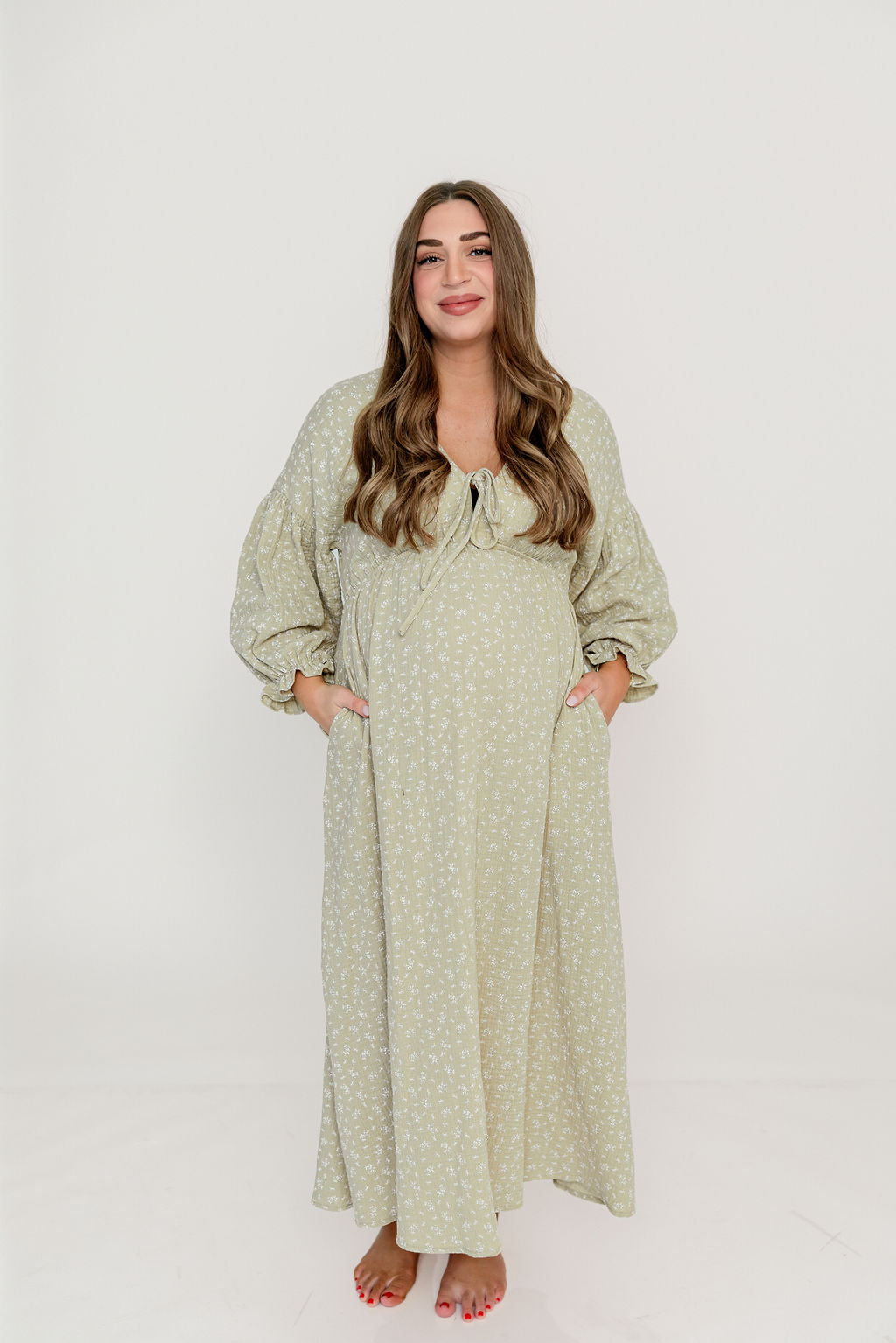 Sienna 100% Cotton Puff Sleeve Maxi Dress in Green Haze Foliage - Bump Friendly
