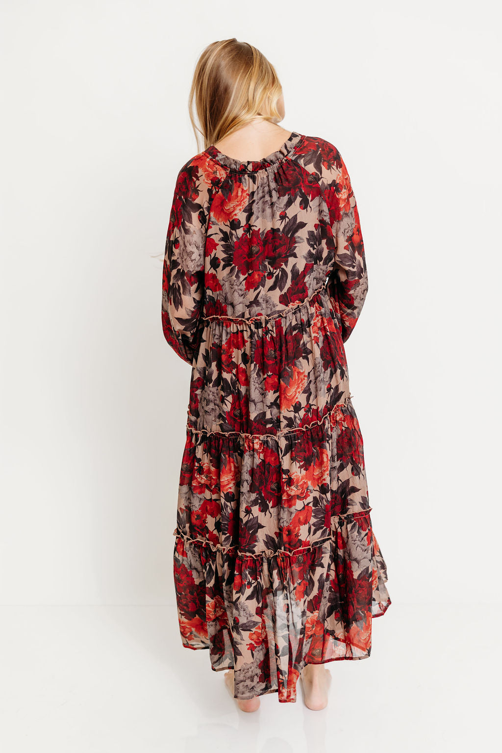 Amy Floral Long Sleeve Maxi Dress in Mocha Multi - Bump Friendly