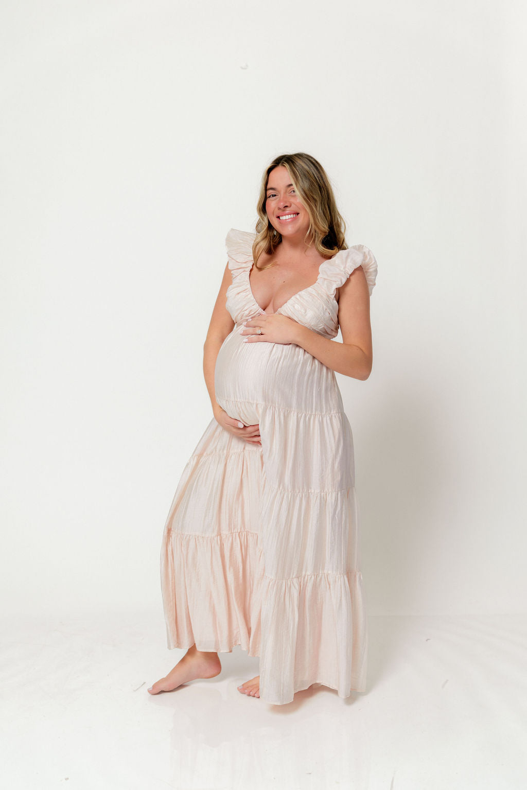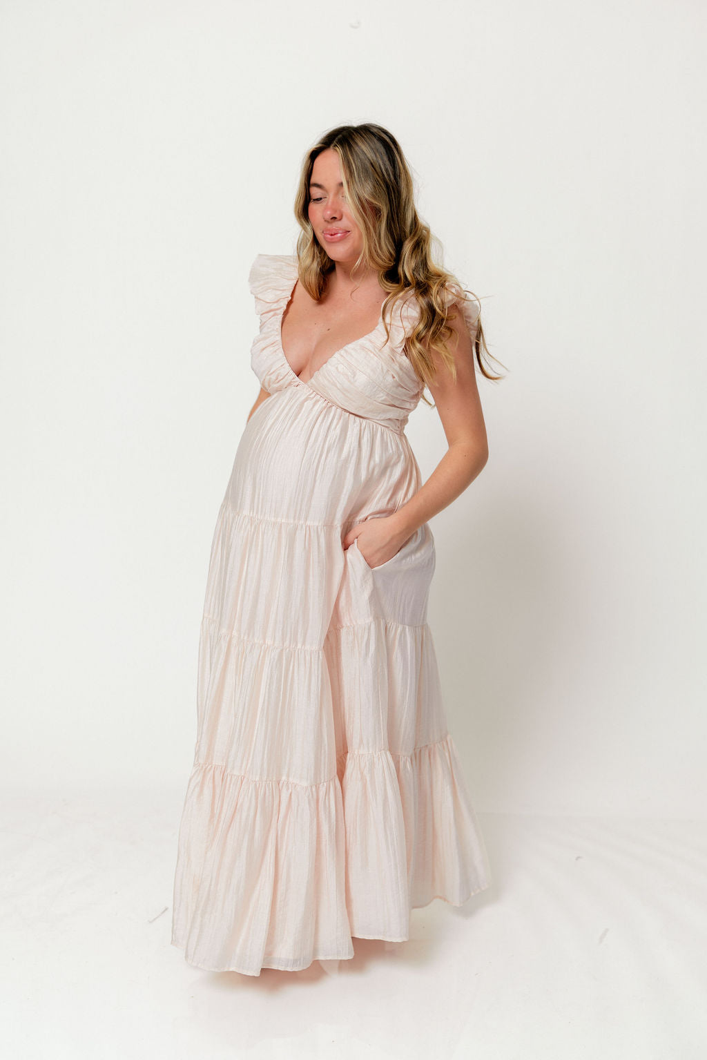 Katy Pleated Bodice Maxi Dress in Peach - Bump Friendly *1/20 PRE-ORDER*