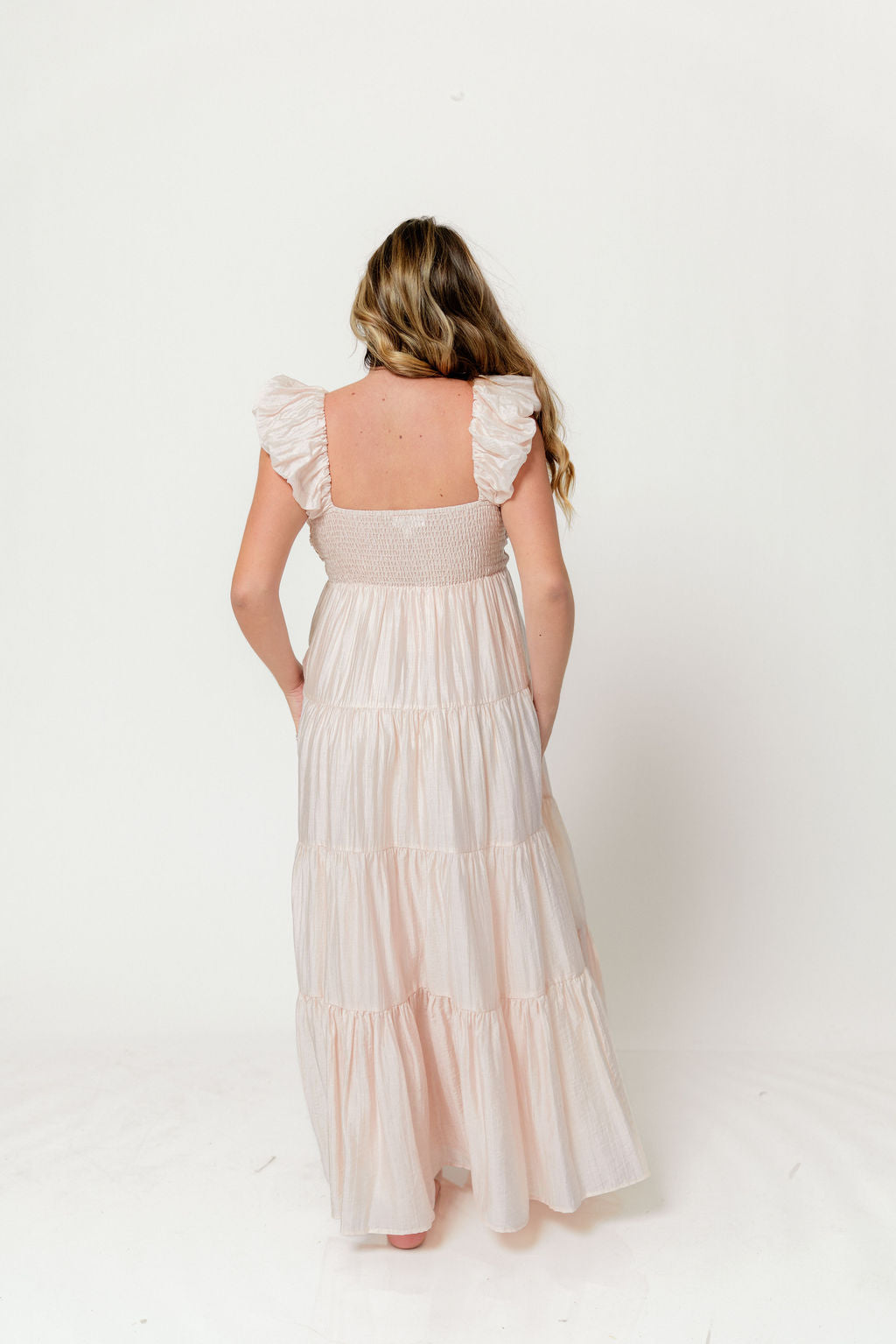 The Katy Maxi has so many gorgeous details, it's easy to see why this is one of Worth Collective's new favorite dresses. Pictures don't do this beauty justice - from its pleated empire-waist bodice, to its ruffled cap sleeves and ultra-feminine tiered skirt, this dress speaks wildflowers and walks on the beach. Pair with neutral sandals for charming elegance.