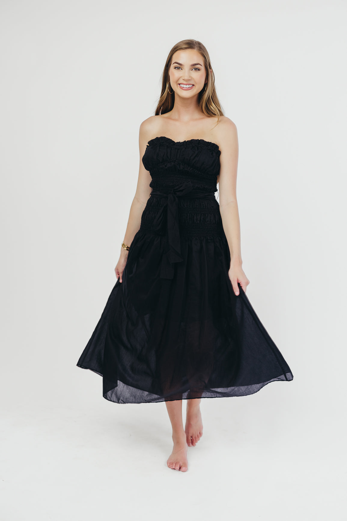 The Devin Midi Dress is that special occasion dress you've been looking for! From its elegant strapless neckline, to its smocked bodice and sashed waist, the Devin is sheer elegance and sure to turn heads wherever you wear it.