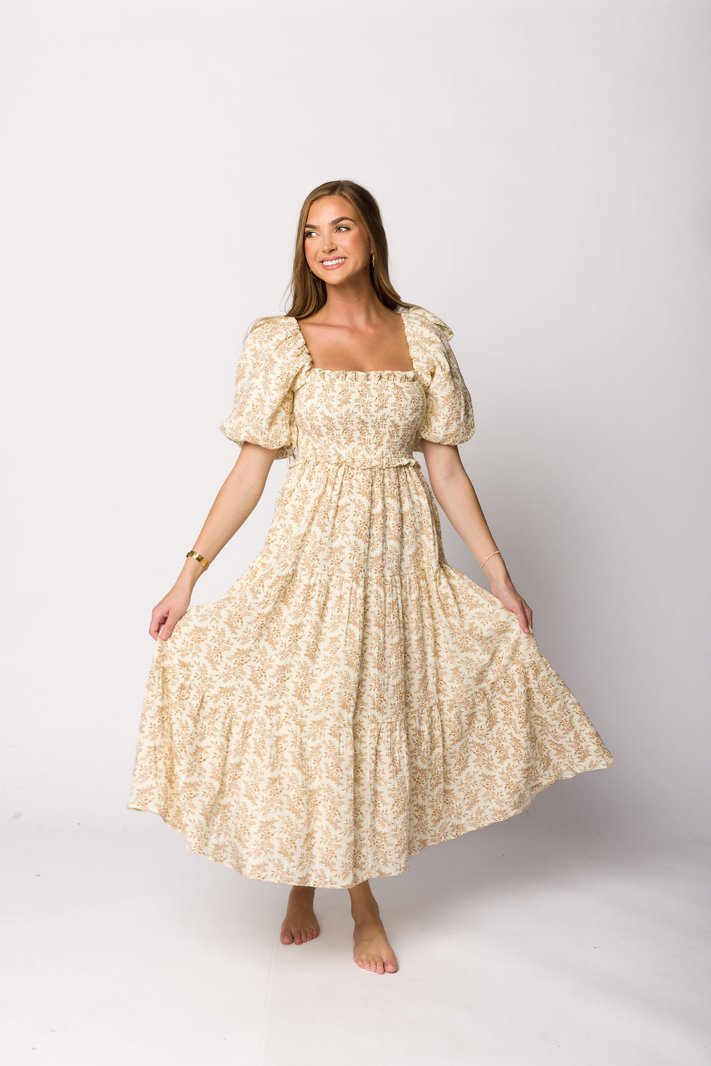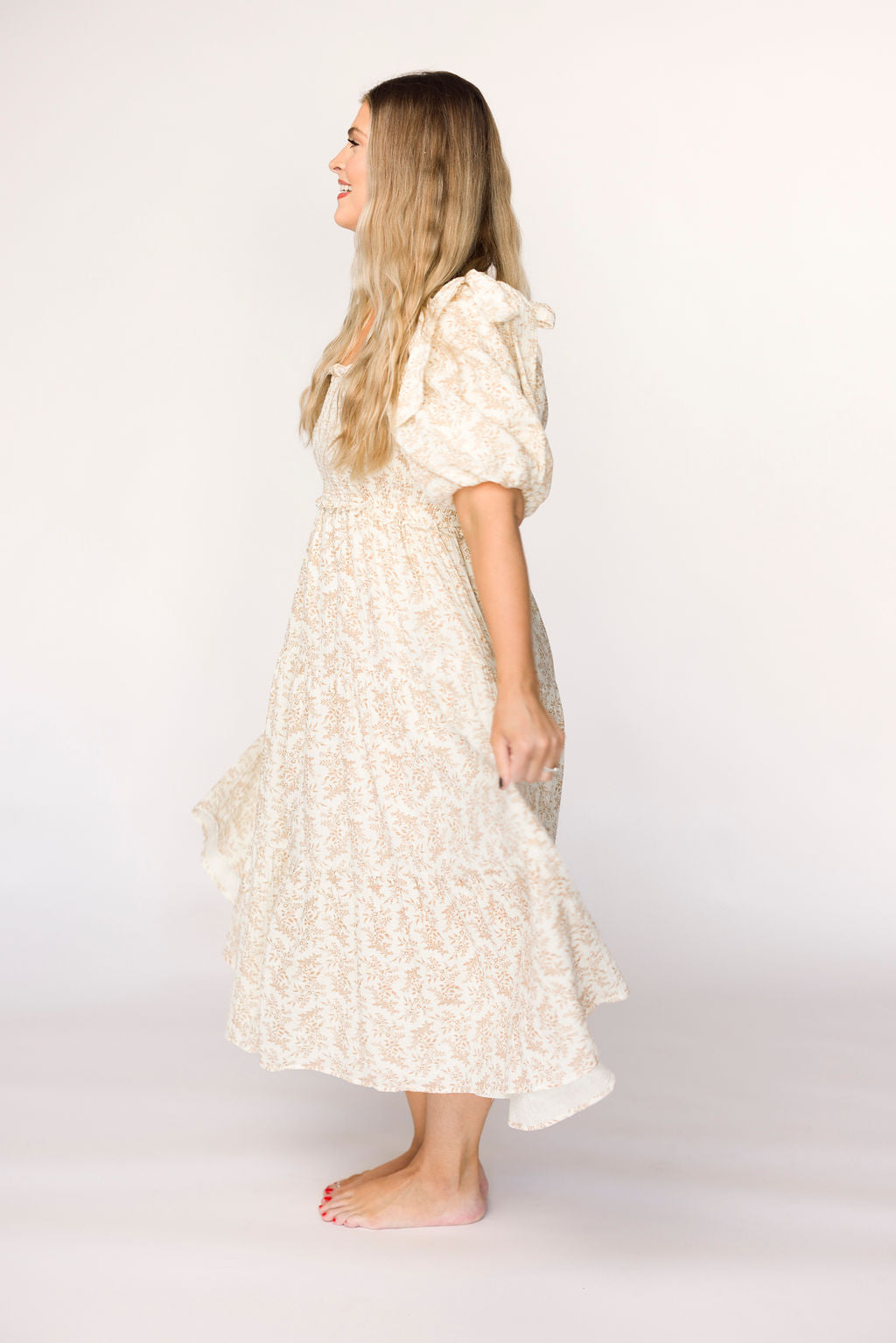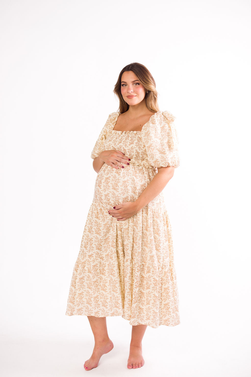 Daphne Long Sleeve Maxi Dress in Light Beige/White Floral - Bump Friendly *2/2 PRE-ORDER*