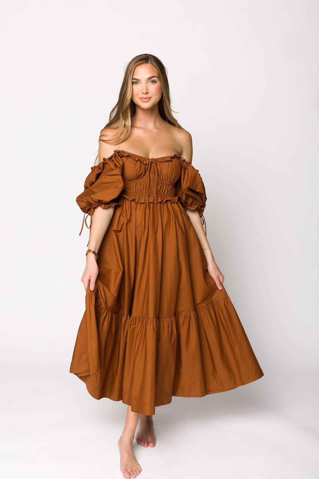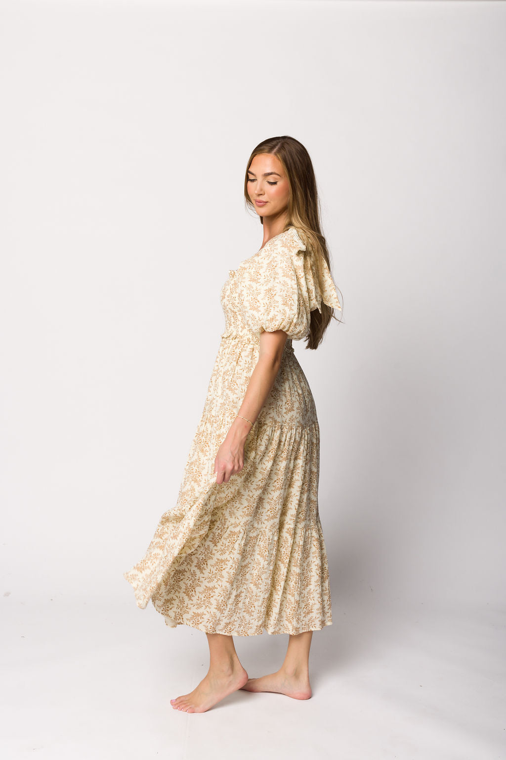 Corrine Tiered Sleeve Maxi Dress in Ivory Cream