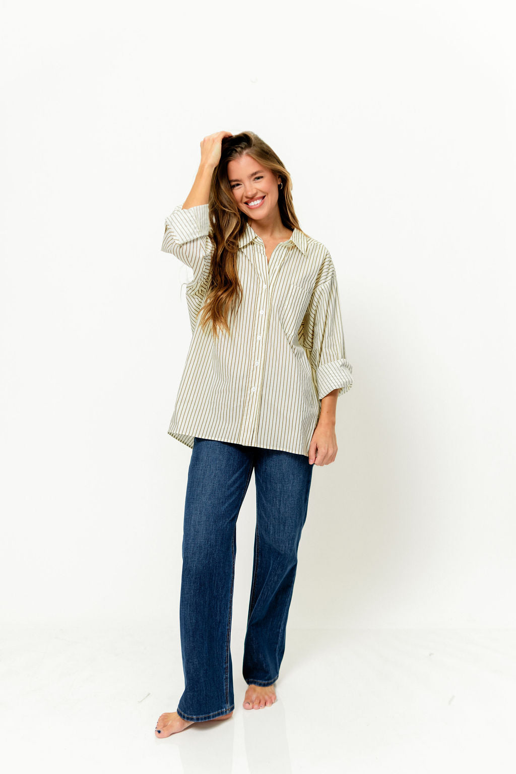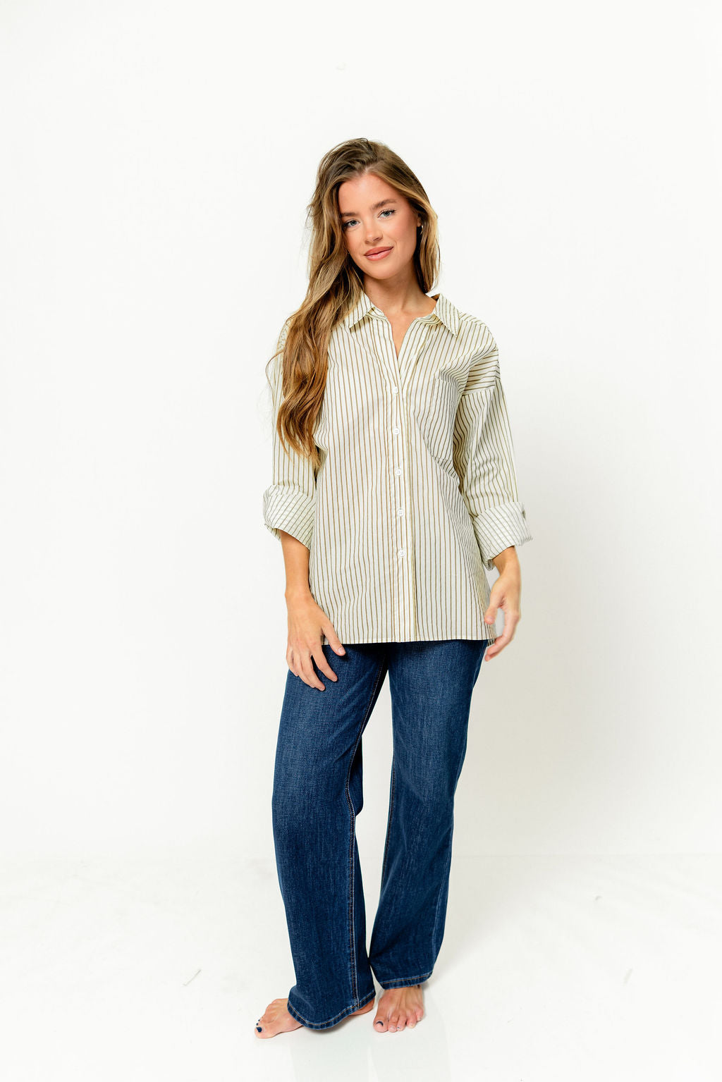 Sicily Button-Down Top in Beige Stripe - Nursing Friendly *Final-Sale*