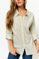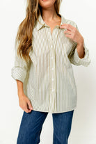 Emily 100% Cotton Collared Button-Down Top in Khaki