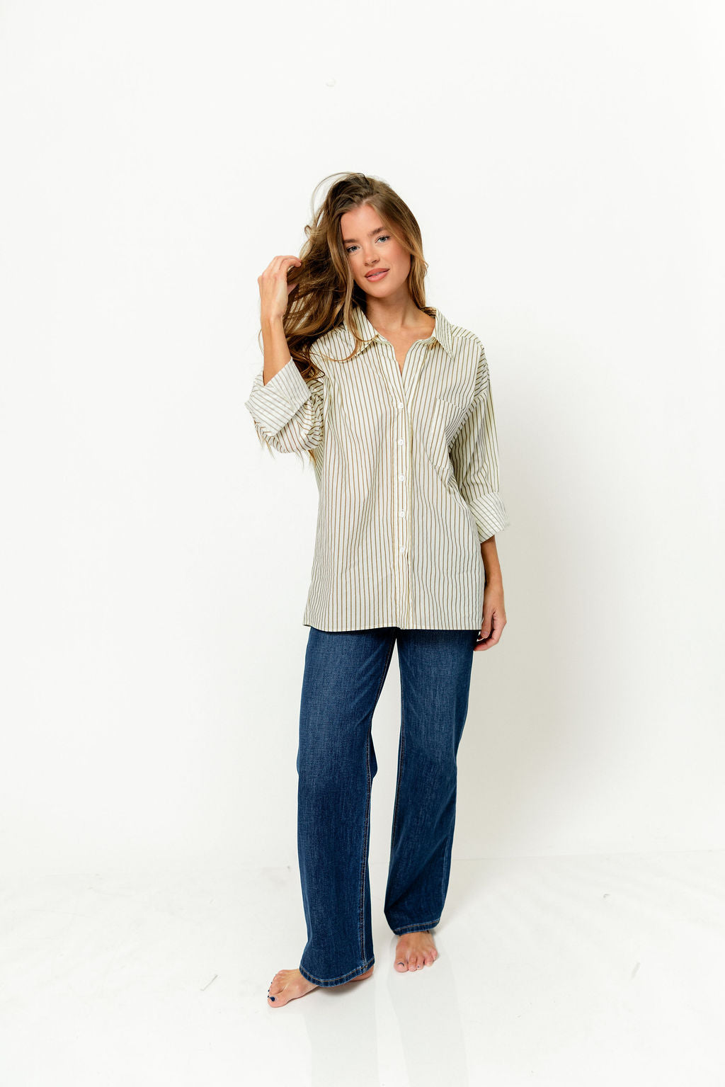 Perfectly oversized and beautifully versatile, the Emily Top is a wear-anywhere kind of shirt you can style year-round. With dainty mini stripes and a classic yet feminine silhouette, this shirt is one of our premium favorites!