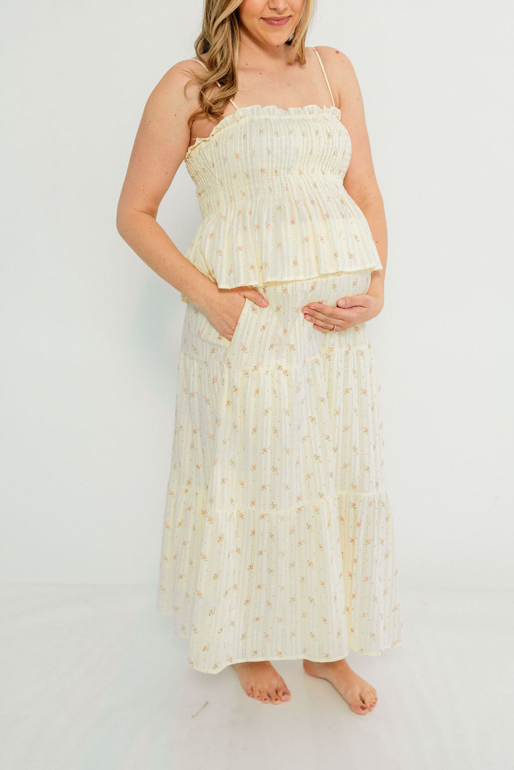 Marlin 100% Cotton Floral Printed Smocked Top in Butter Yellow