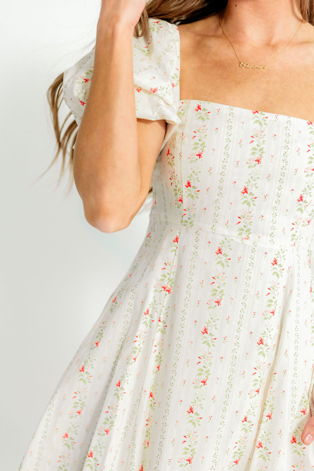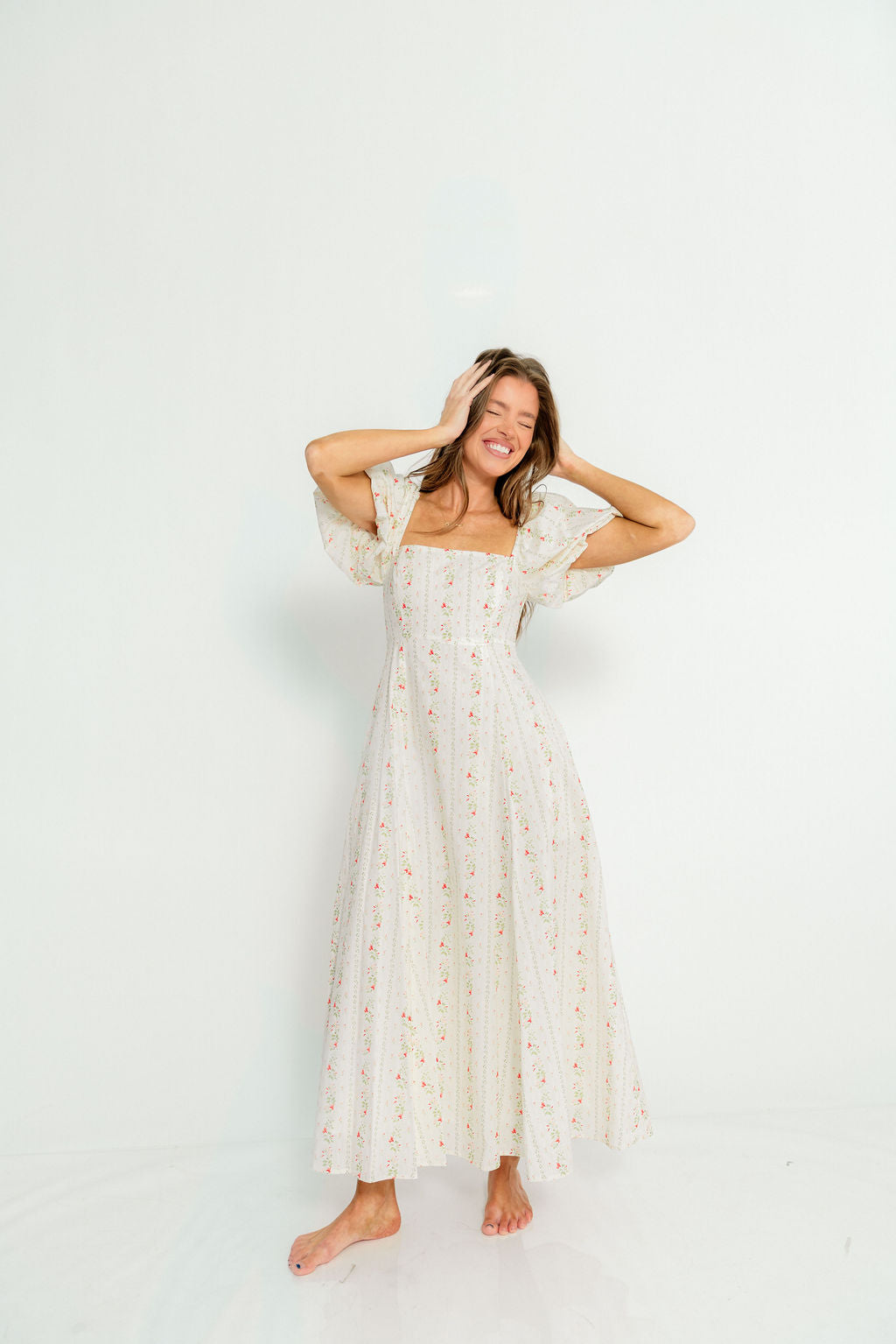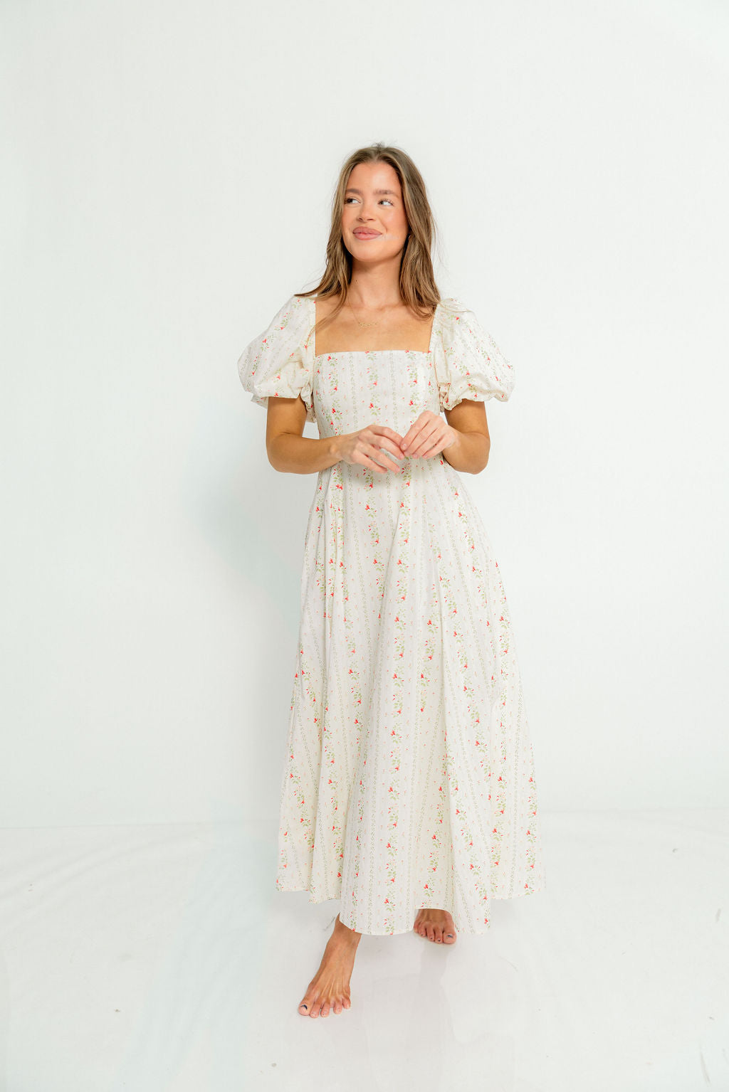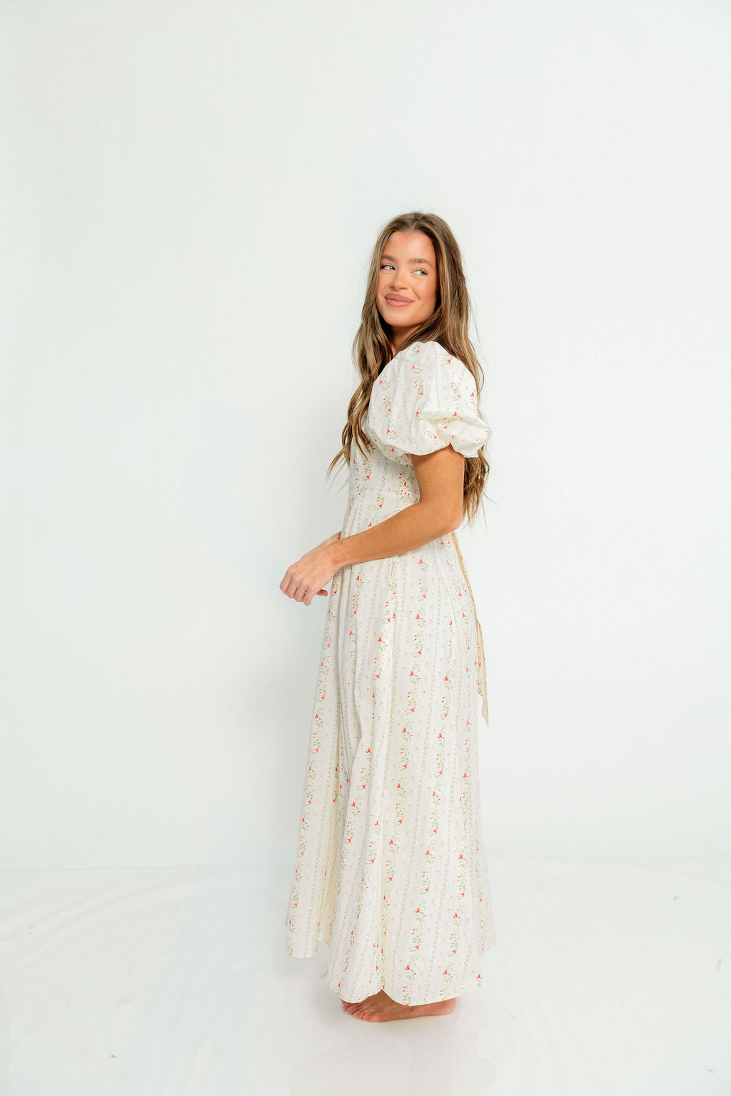 Tate Floral Print Puff Sleeve Maxi Dress in Off-White
