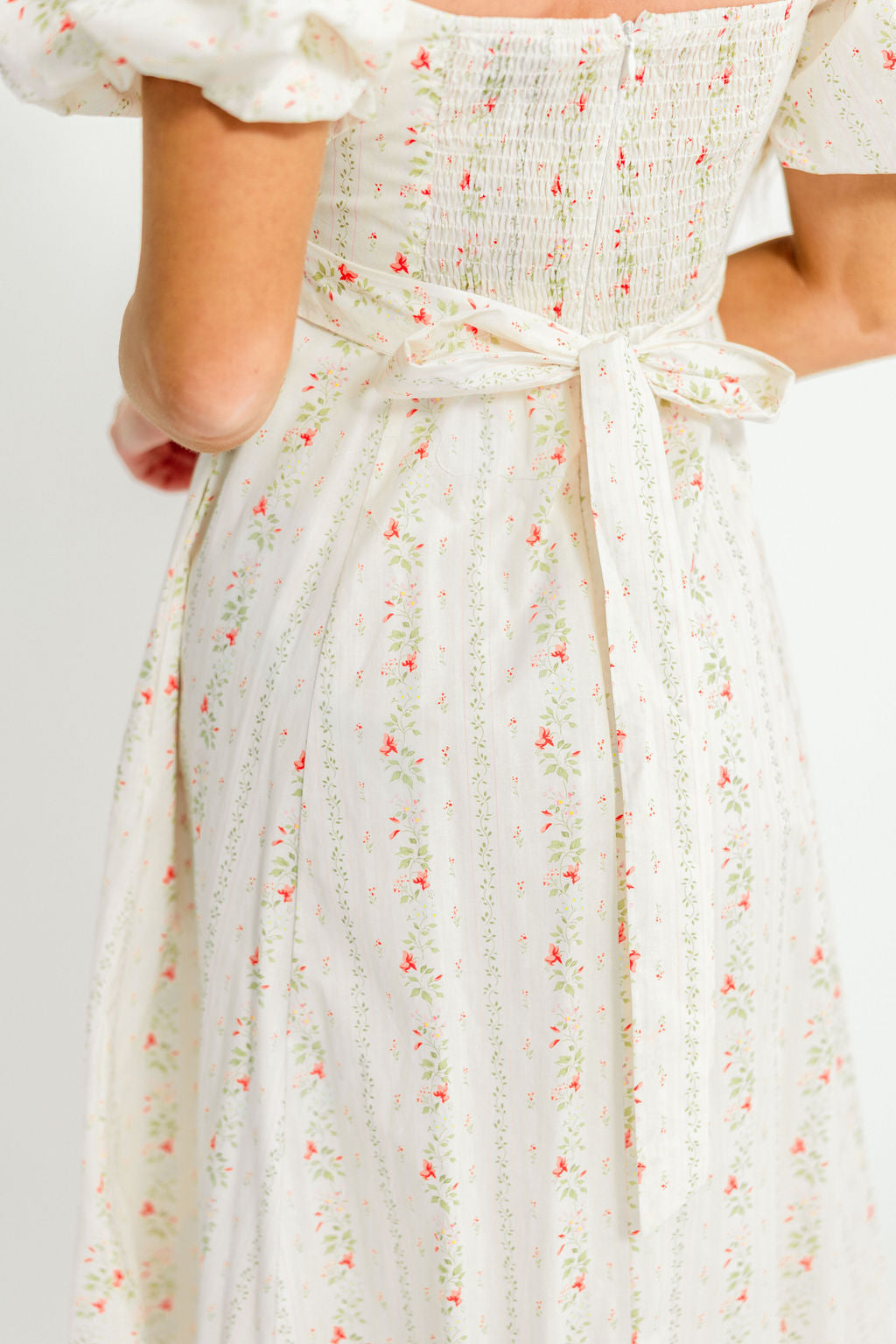 Meet our summer dream dress--the Tate Maxi! This beautiful silhouette offers a fitted, flattering bodice paired with a smocked back panel for comfort, plus a self-tie sash to cinch your waist and highlight those beautiful puffed sleeves. Best of all, this gown is crafted from premium 100% cotton materials, making it a versatile and sustainable styling choice!