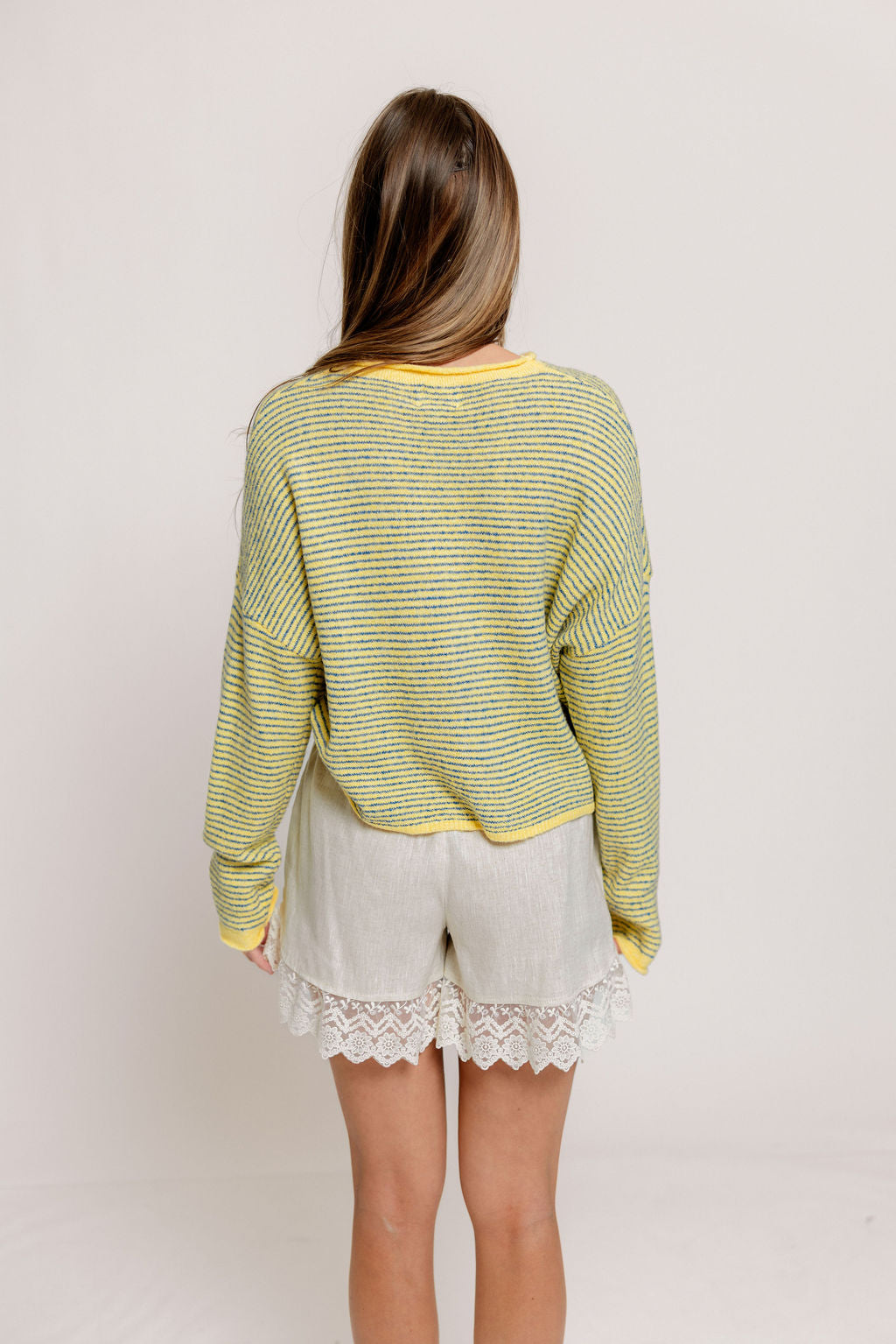 Whether you're wearing this adorable striped cardigan solo, layering over a tank or camisole, or styling it tied over your shoulders, the Piper will wear beautifully season after season. We love the dainty pinstripe and rolled edge detail that gives this cardigan a sweet and casual vibe.
