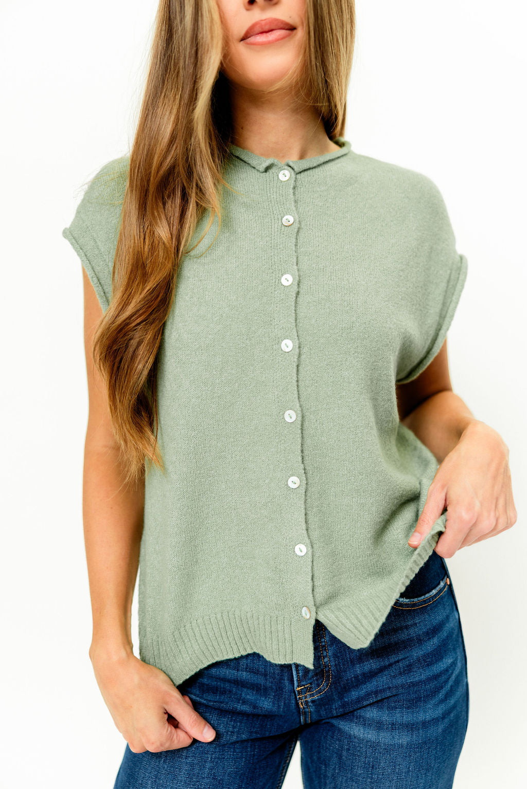 Wrenley Sweater Vest Cardigan in Matcha