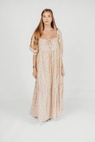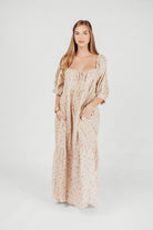 Cara 100% Cotton Maxi Dress in Pink/Brown Floral *Final-Sale*