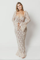 Step into timeless charm in our new Worth Collective exclusive gown that's fit for the runway or the red carpet! This gorgeous lace gown features a flattering silhouette that hugs your curves, with an alluring bodice and dramatic long sleeves; the Heirloom Maxi is a showstopper dress for an extra-special occasion!