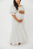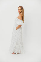 Livvy 100% Cotton Maxi Dress in Off-White / Blue Floral - Bump Friendly & Inclusive Sizing
