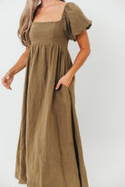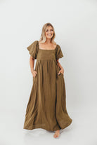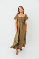 Candace Woven Linen Maxi Dress in Dark Olive - Bump Friendly