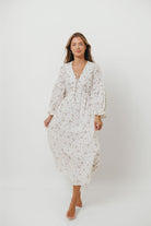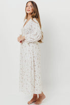 Hunter 100% Cotton Gauze Maxi Dress with Detail Trimming in Ivory Pink Floral - Bump Friendly and Inclusive Sizing