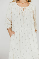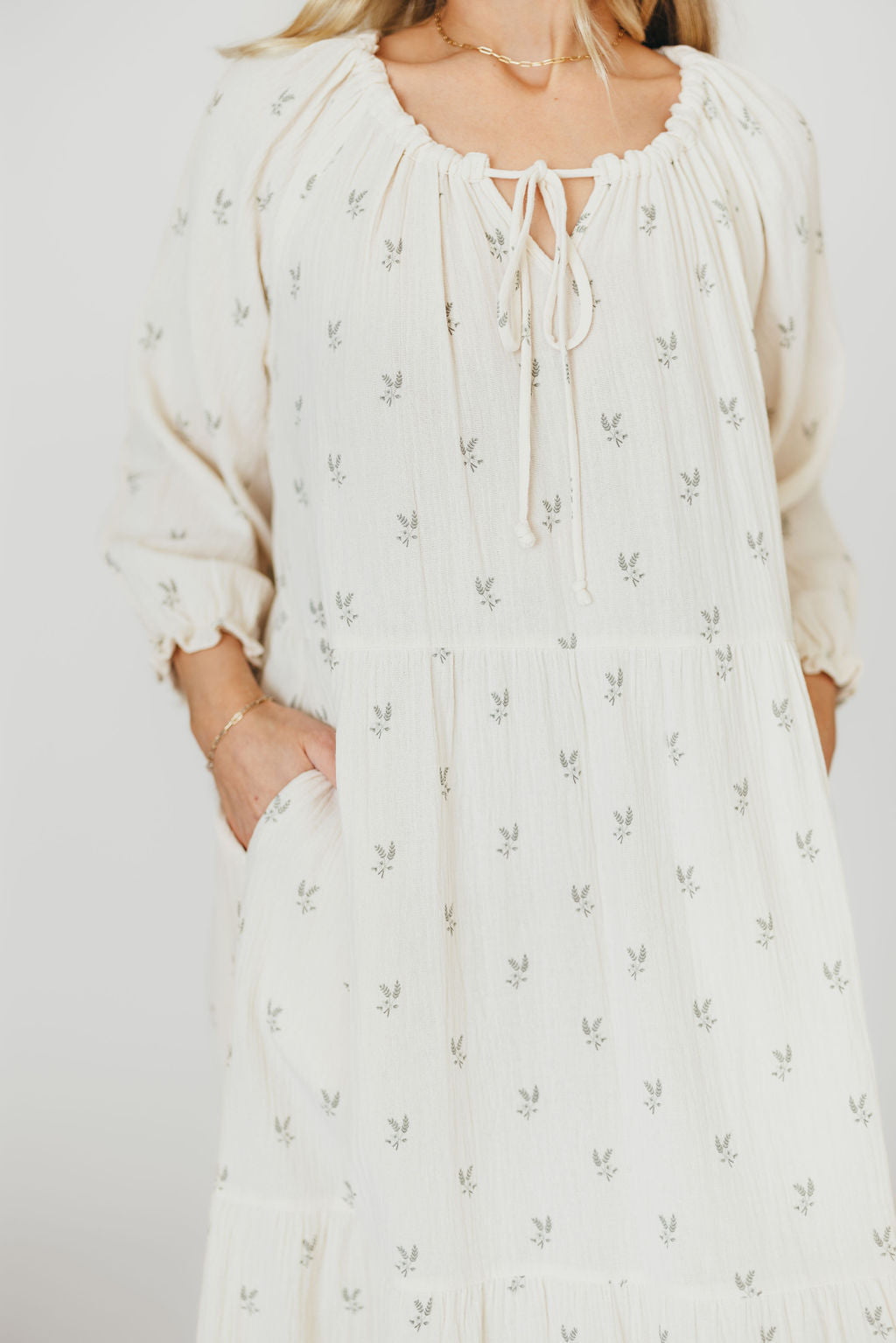 Avery Tiered Linen-Blend Midi Dress in Soy/Sage Foliage - Bump Friendly and Inclusive Sizing *Final-Sale*