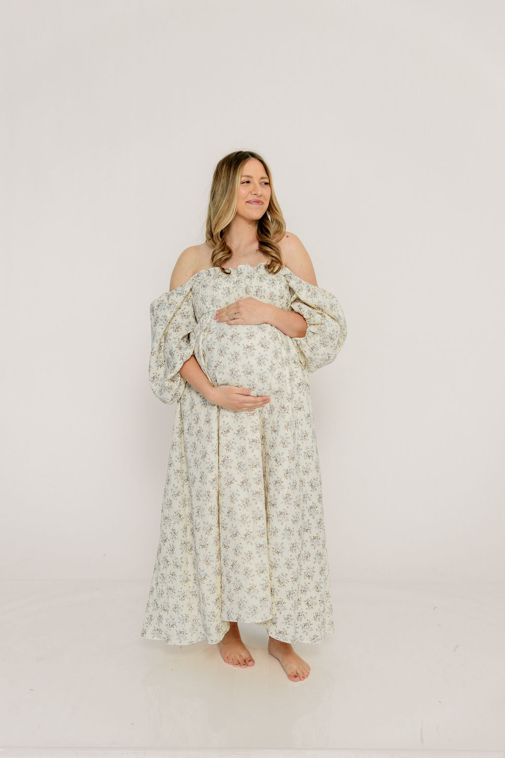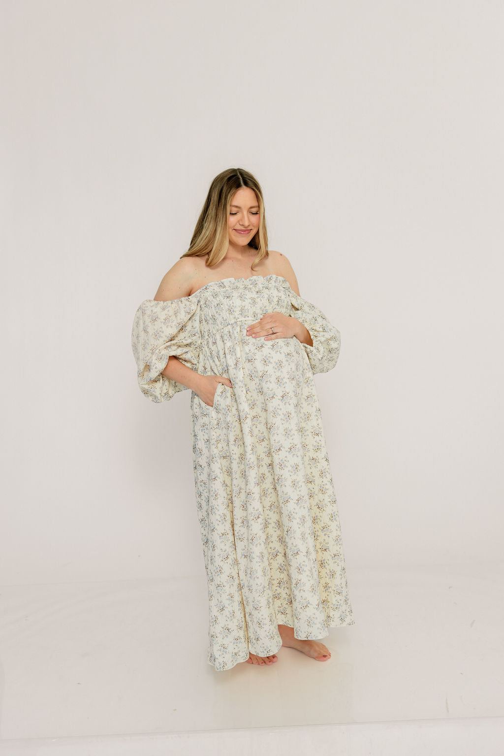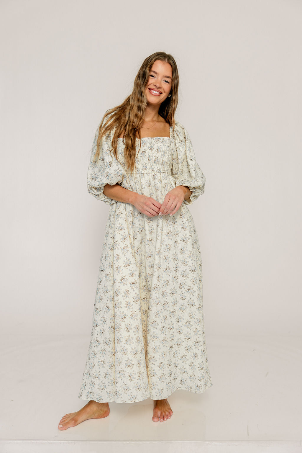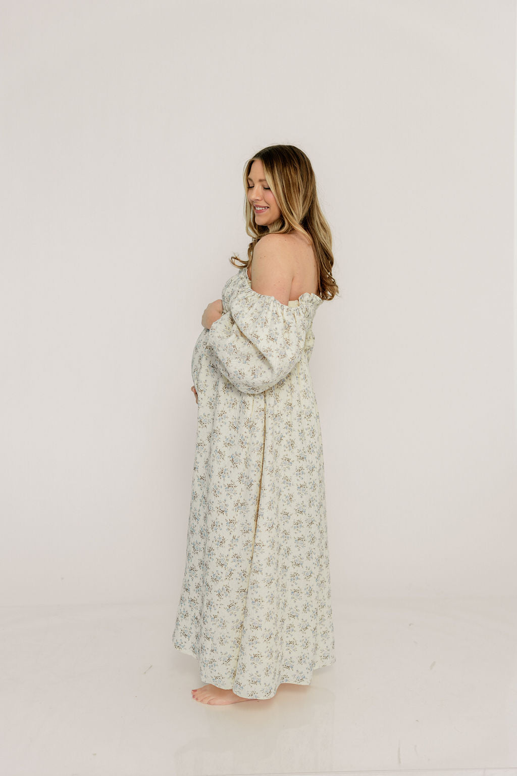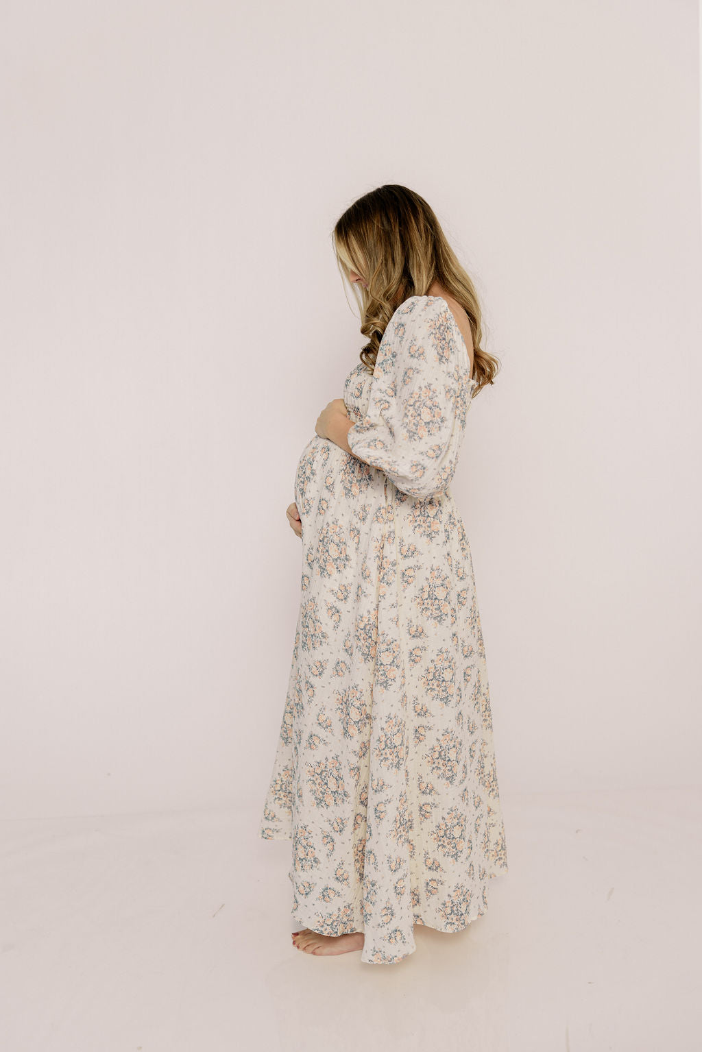 Noa Premium 100% Cotton Maxi Dress in Dusty Blue Floral - Bump Friendly *2/20 PRE-ORDER*