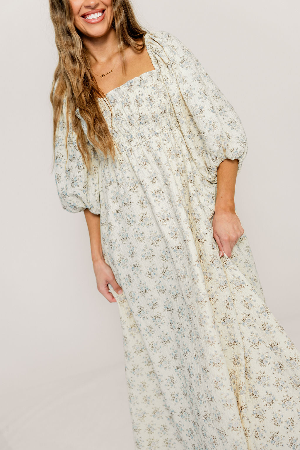 Brenna Floral Maxi Dress in Latte