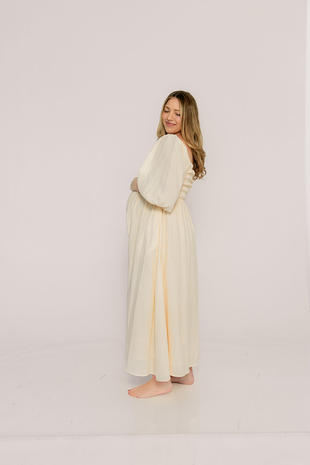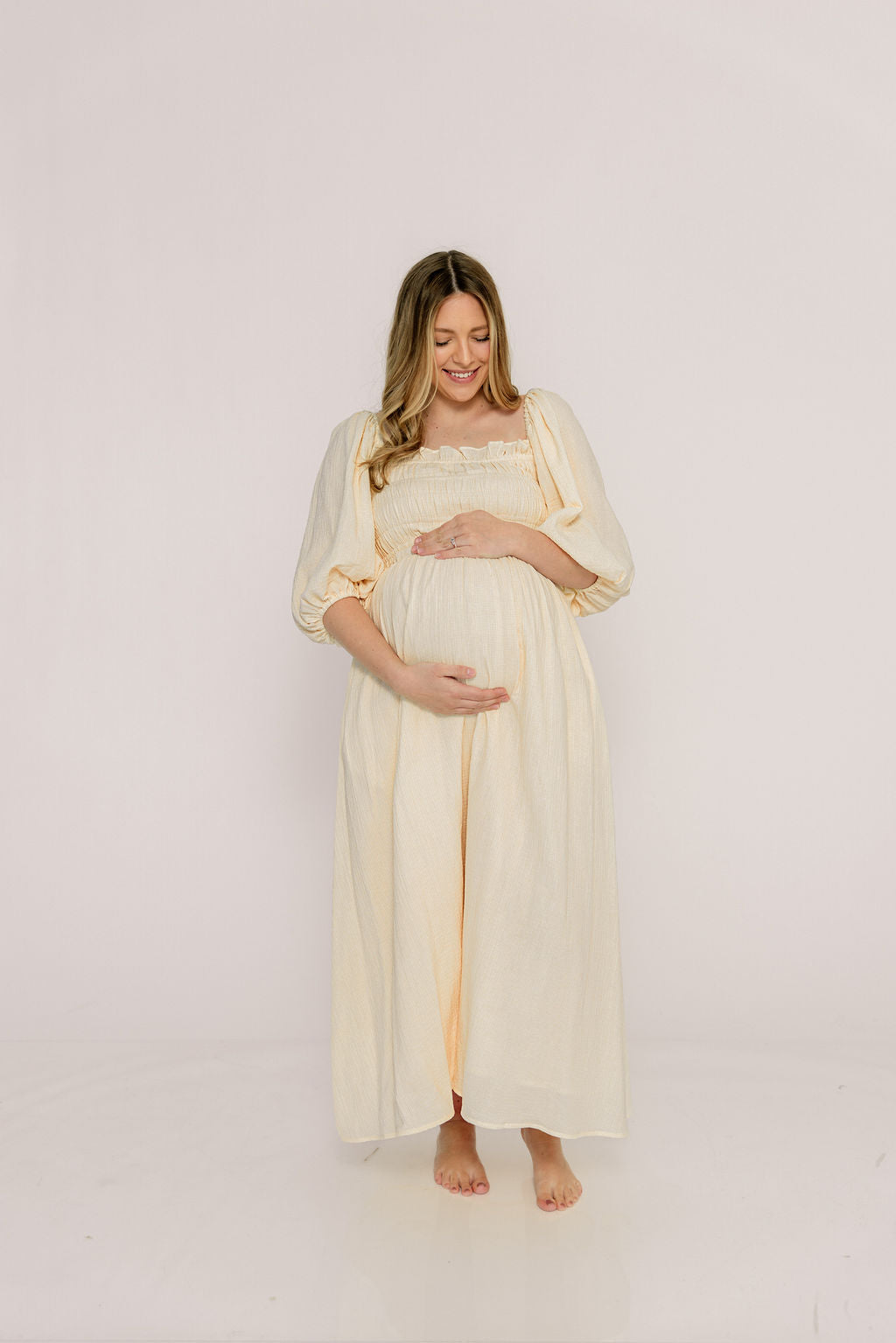 Athena Lace Tiered Smocked Maxi Dress in Butter Cream - Bump Friendly