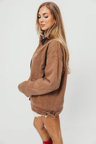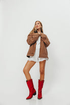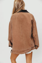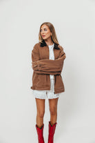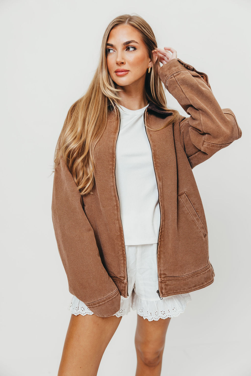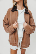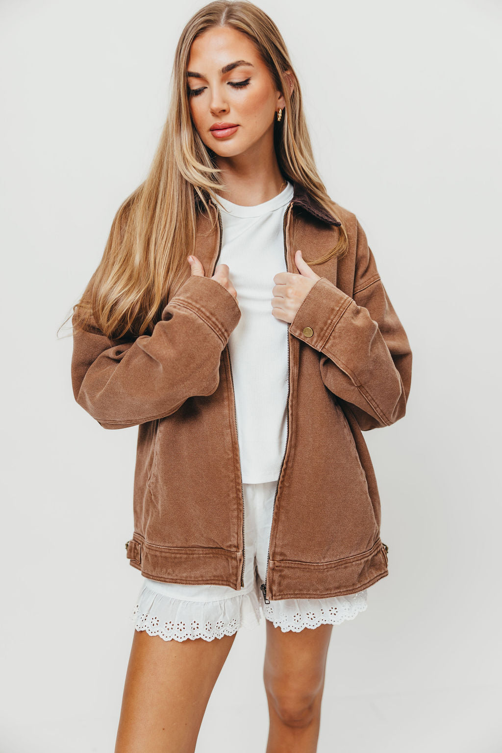 GARMENT DETAILS: Soft cotton barn jacket with a buttery Viscose-blend lining. Features a full front zipper closure, with a contrast color collar and side pockets.