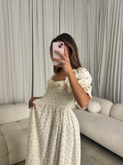The Nara Maxi Dress is flirty and fun for any occasion! This premium cotton gown features fluffy puffed sleeves, a smocked bodice, and a forgiving, flattering fit. She's a beautiful option for comfortable weekday wear, or dress her up for a special shower or brunch.
