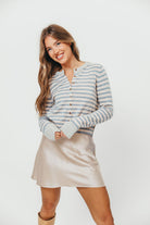 Rae Striped Cardigan Top in Sky Blue/Oat/Grey