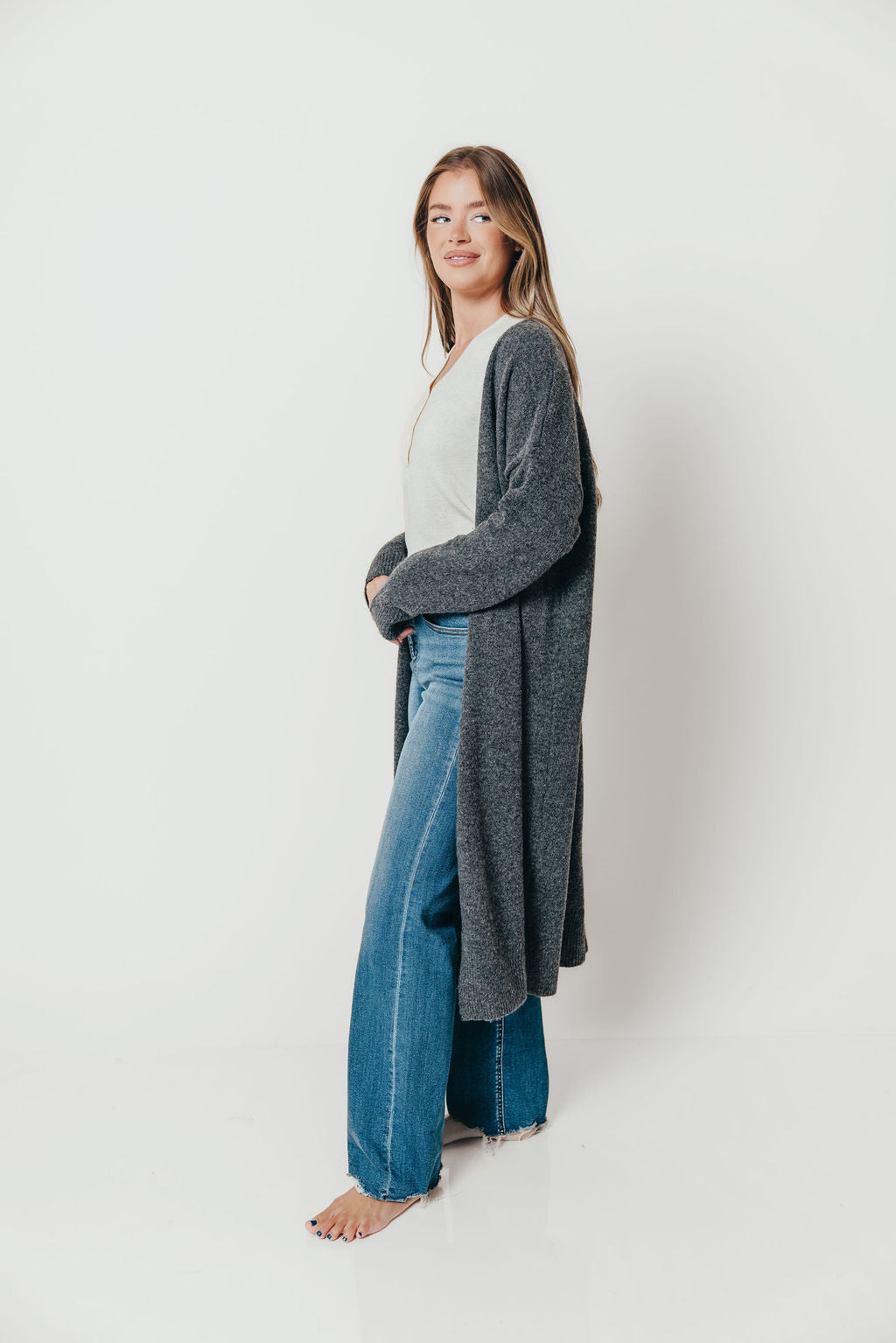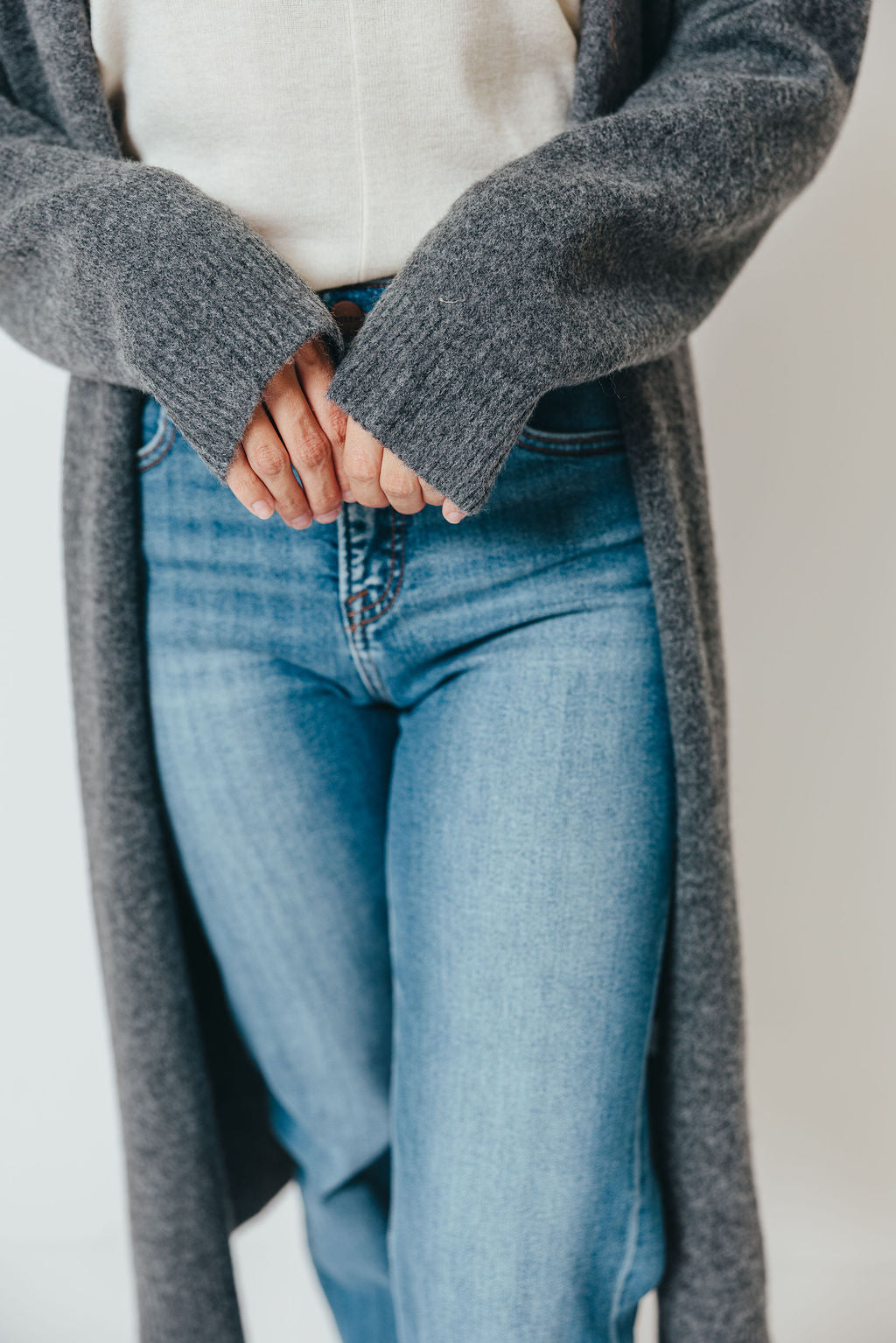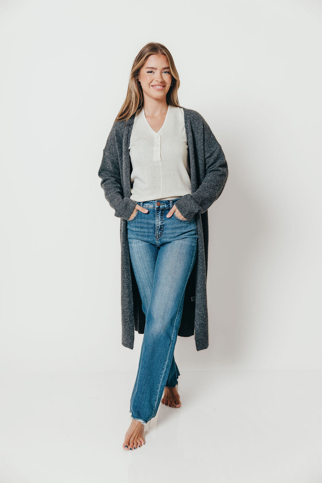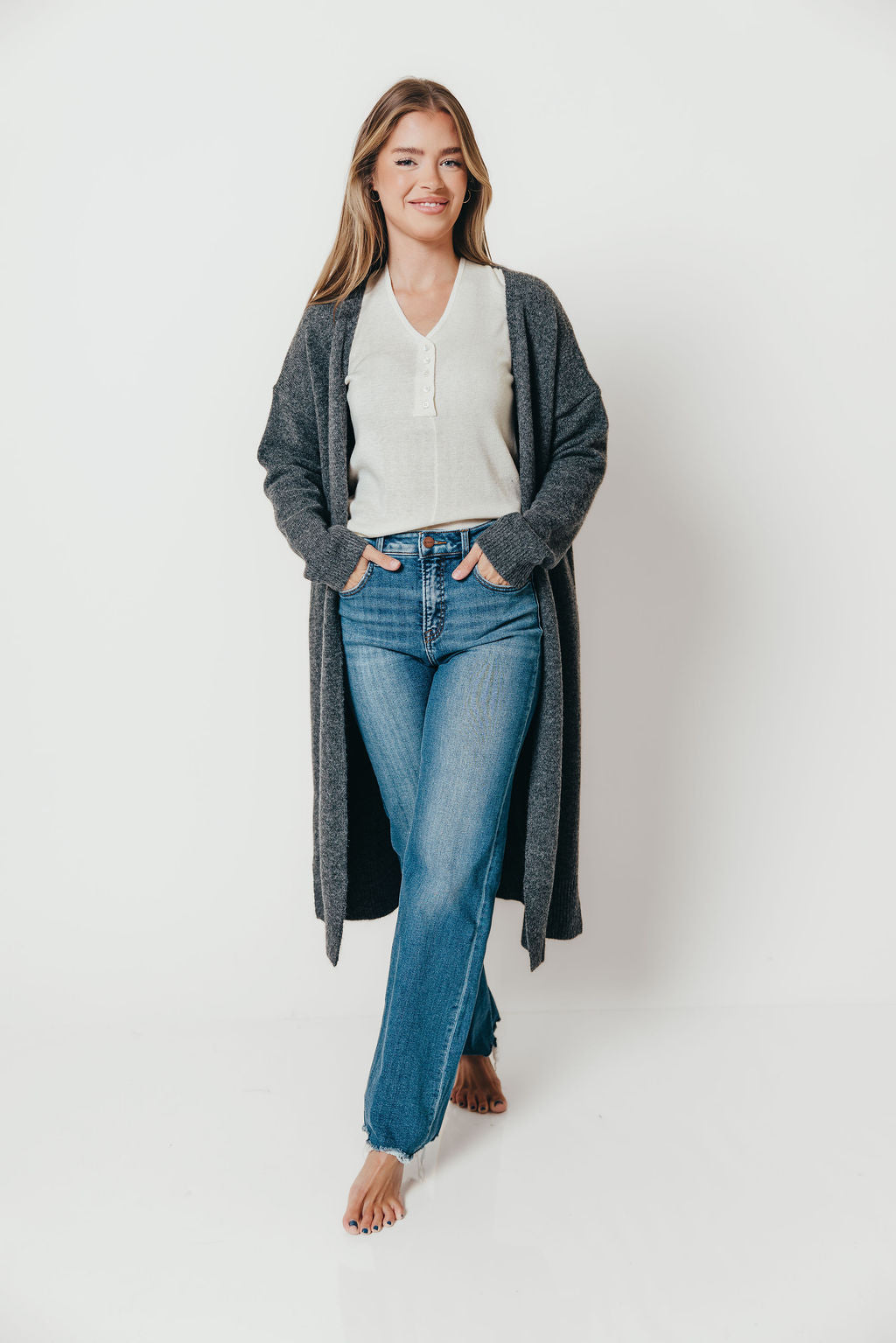 Priya Cardigan Top with Front Slit in Cream *Final Sale*