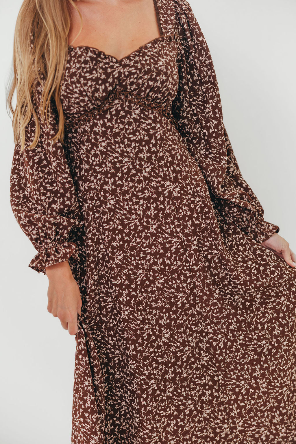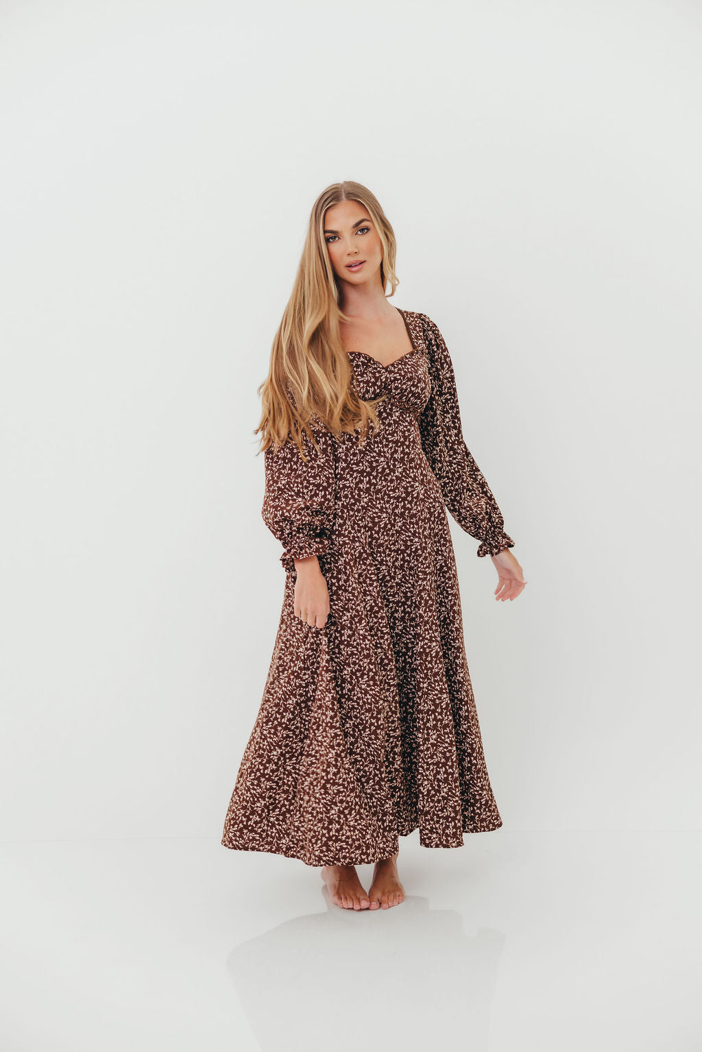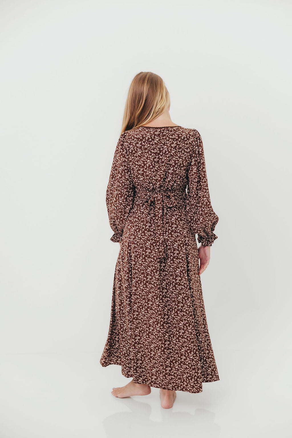 Monroe Maxi Dress with Long Sleeves in Chocolate Brown- Bump Friendly *Final Sale*