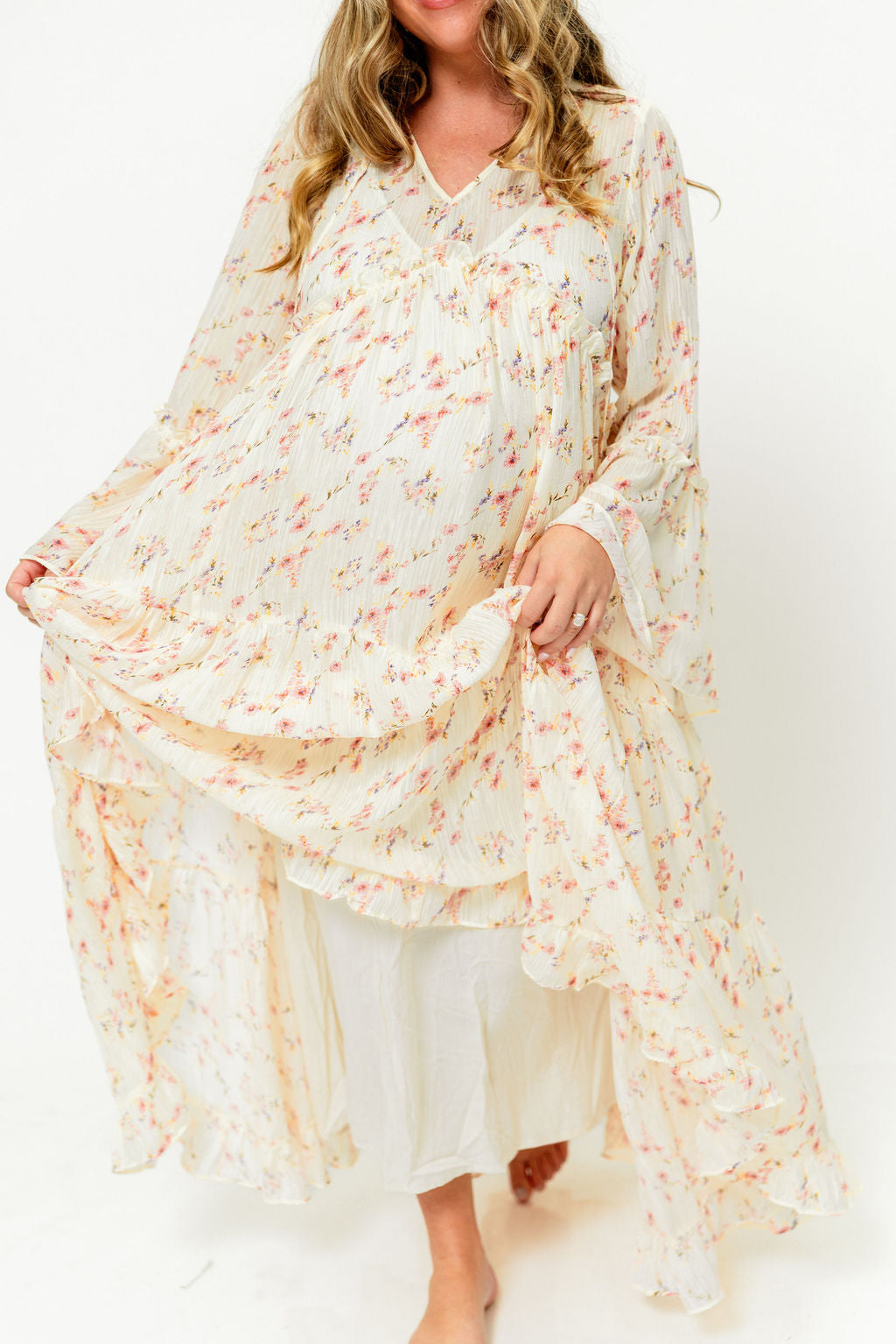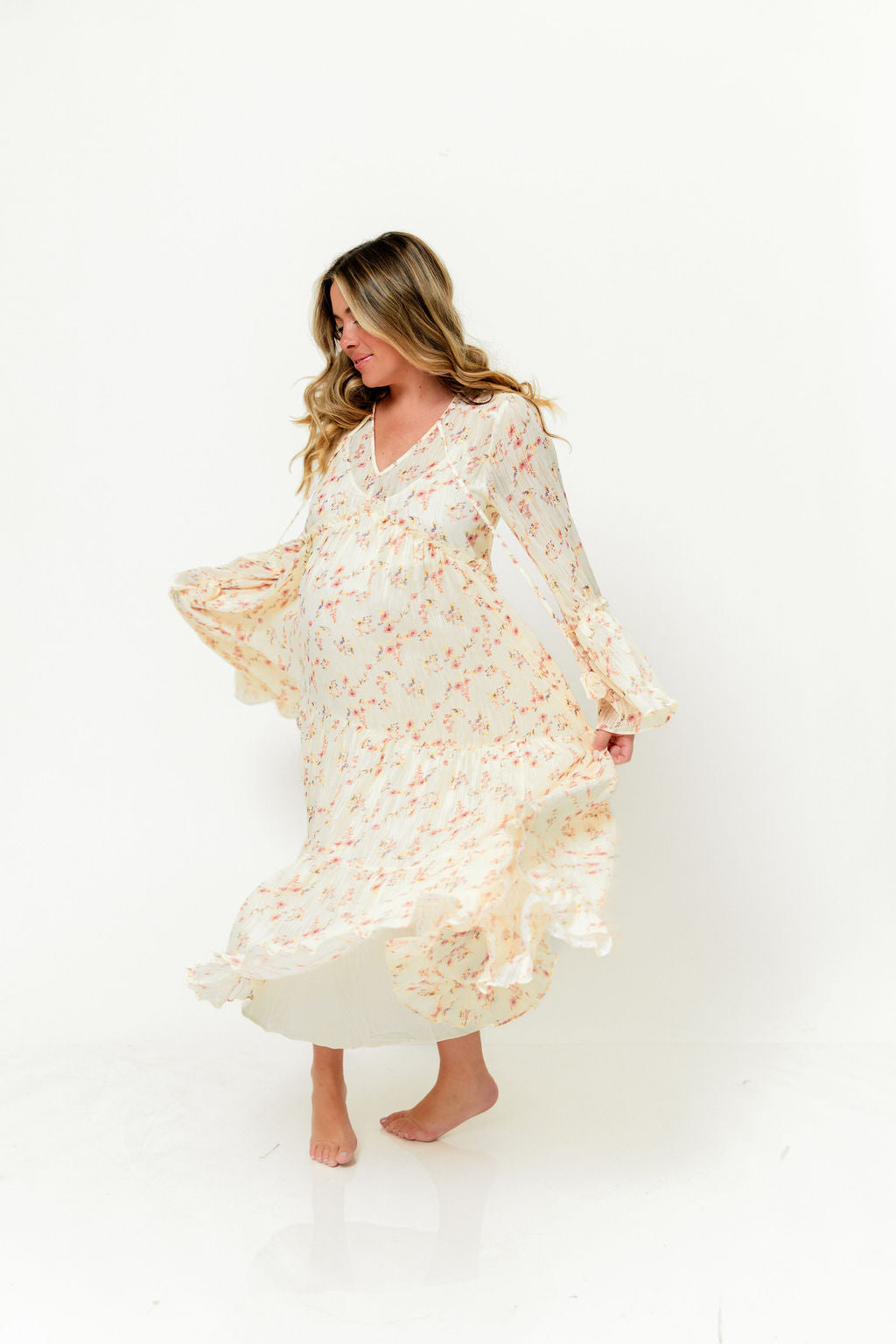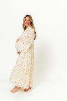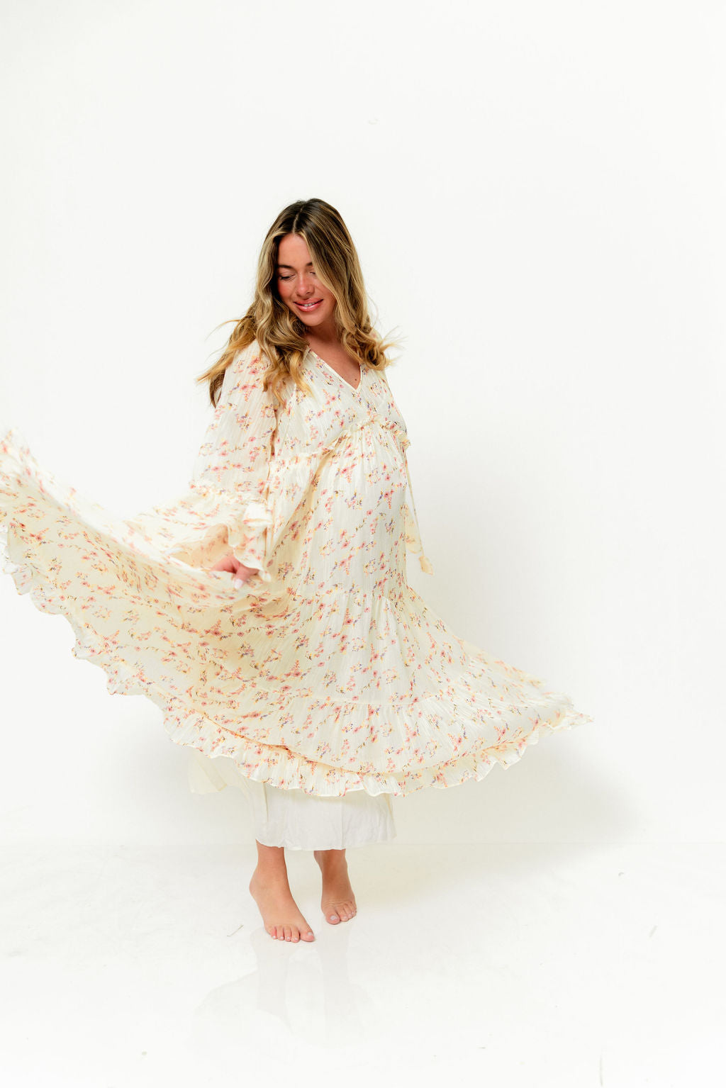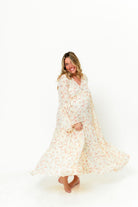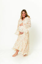 Lisa Woven Floral V-Neck Maxi Dress with Detachable Liner in Cream Multi - Bump Friendly