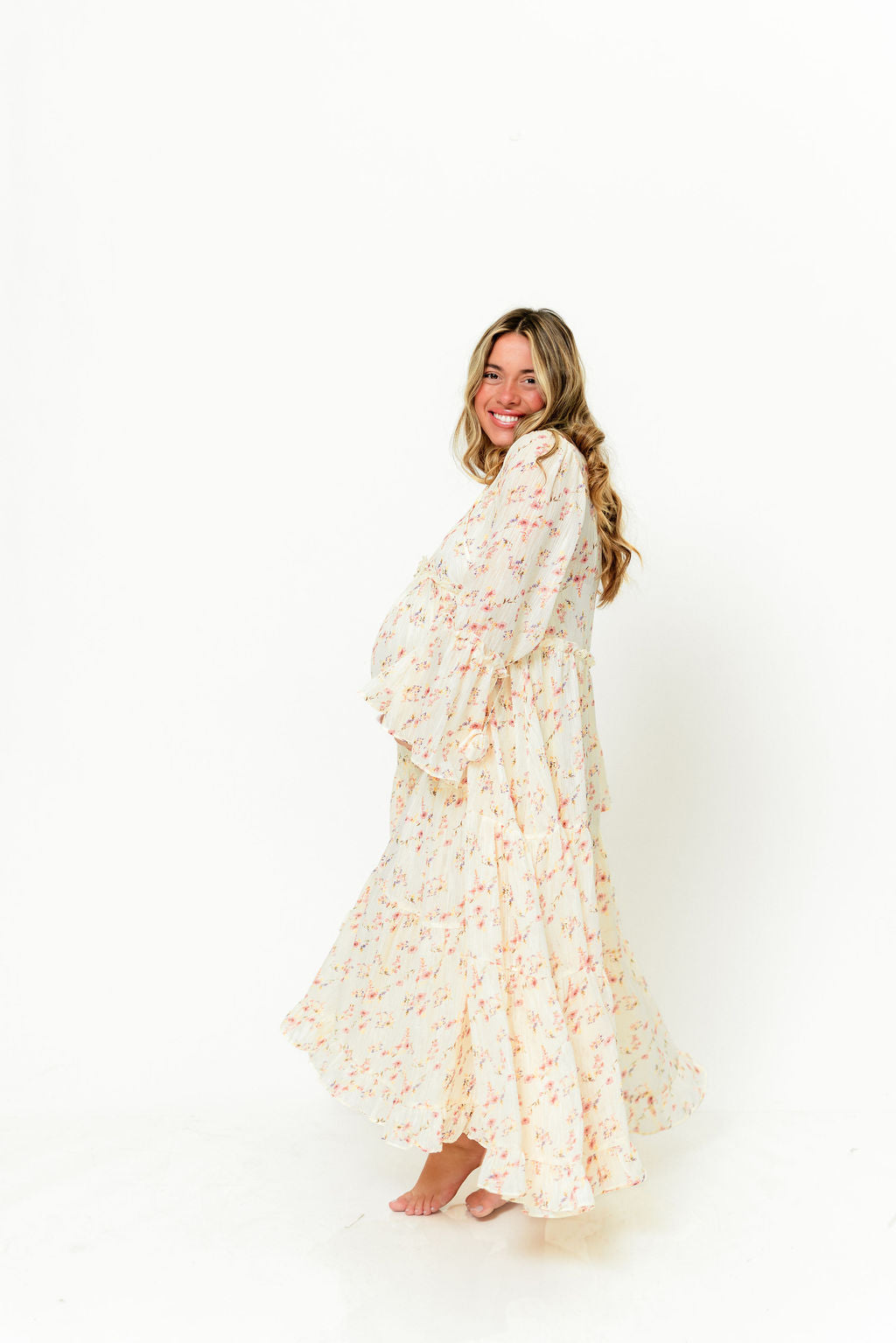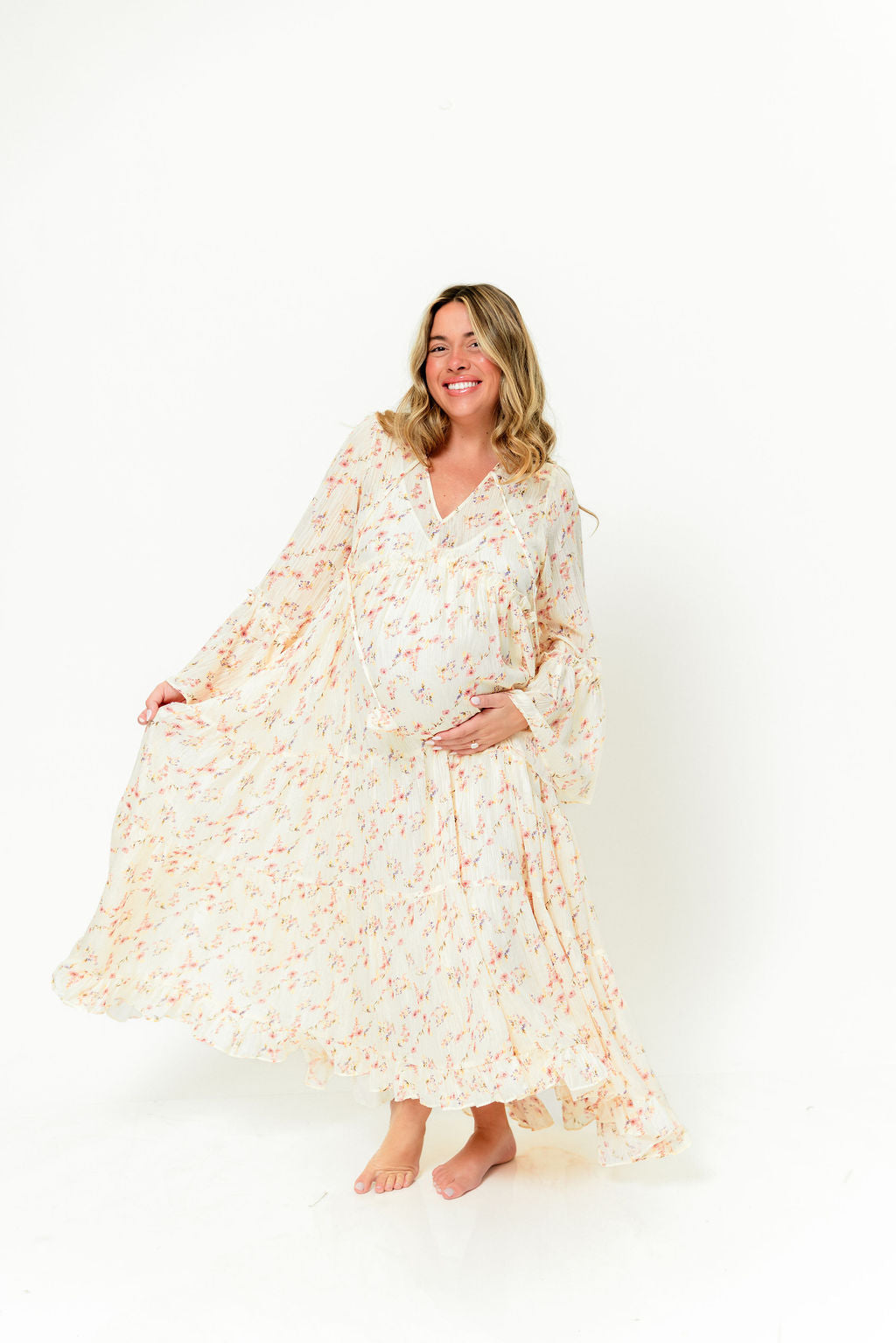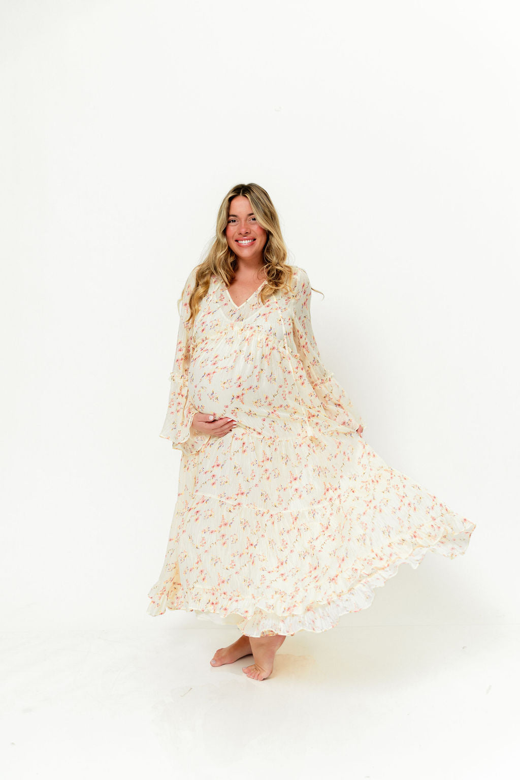 Lisa Woven Floral V-Neck Maxi Dress with Detachable Liner in Cream Multi - Bump Friendly