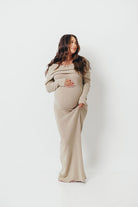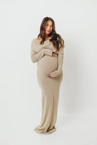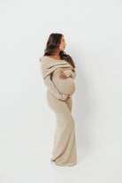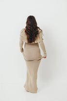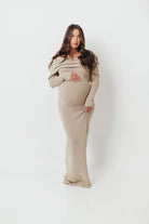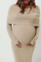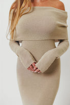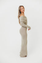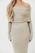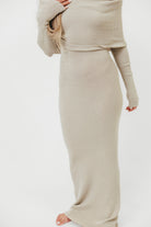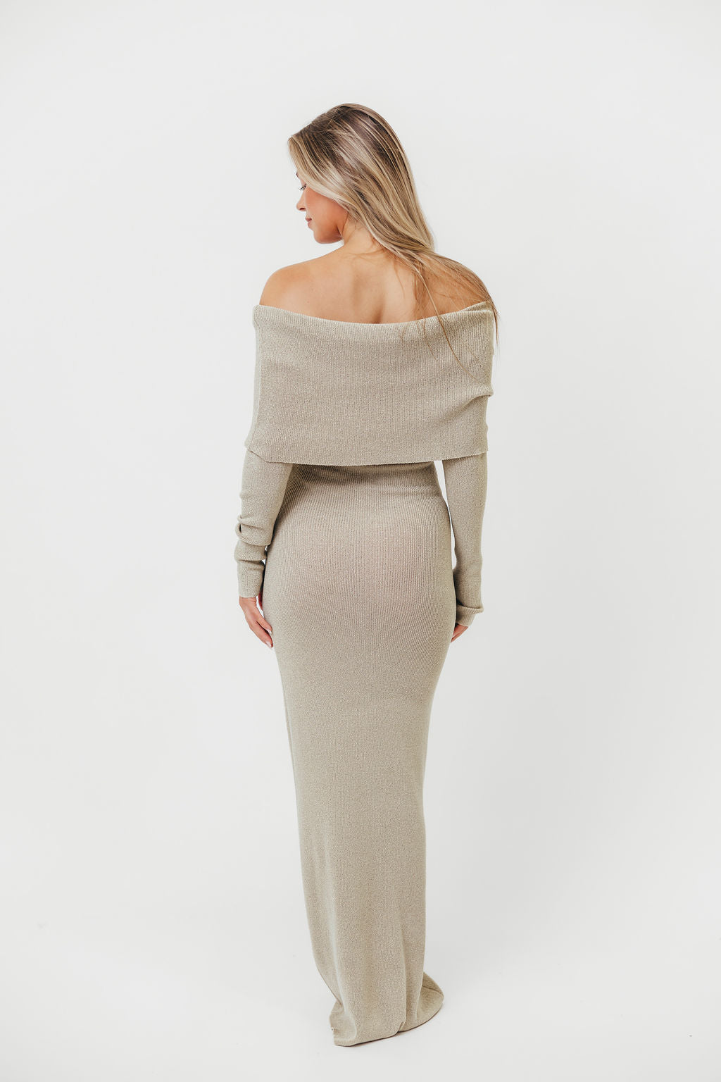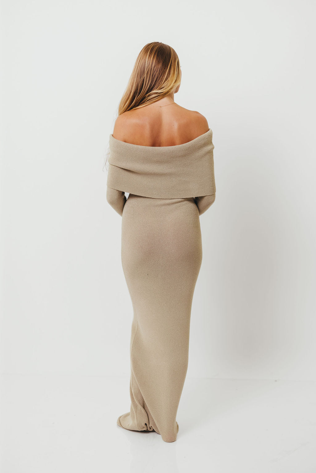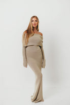 Winona Off-the-Shoulder Knit Maxi Dress in Oyster