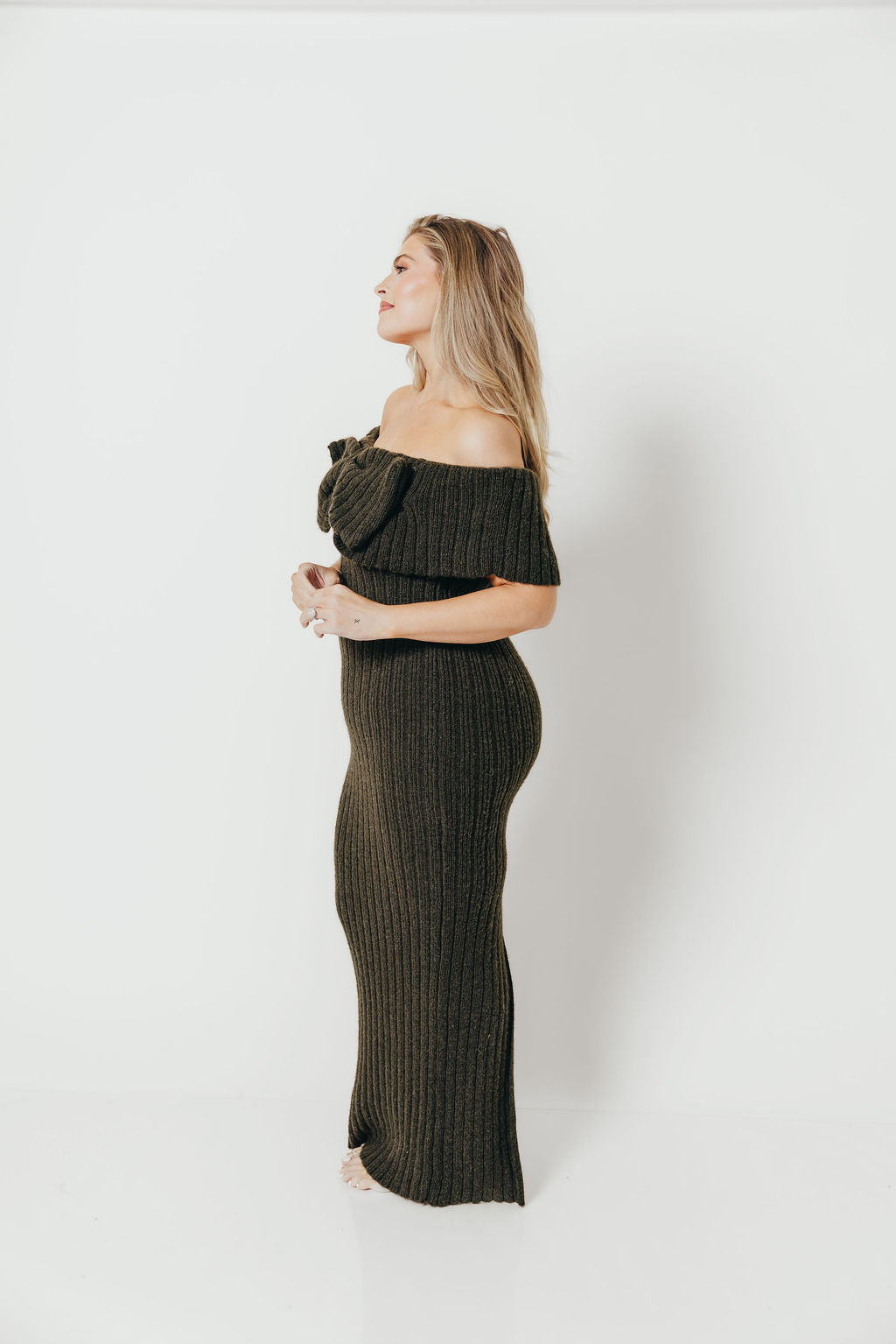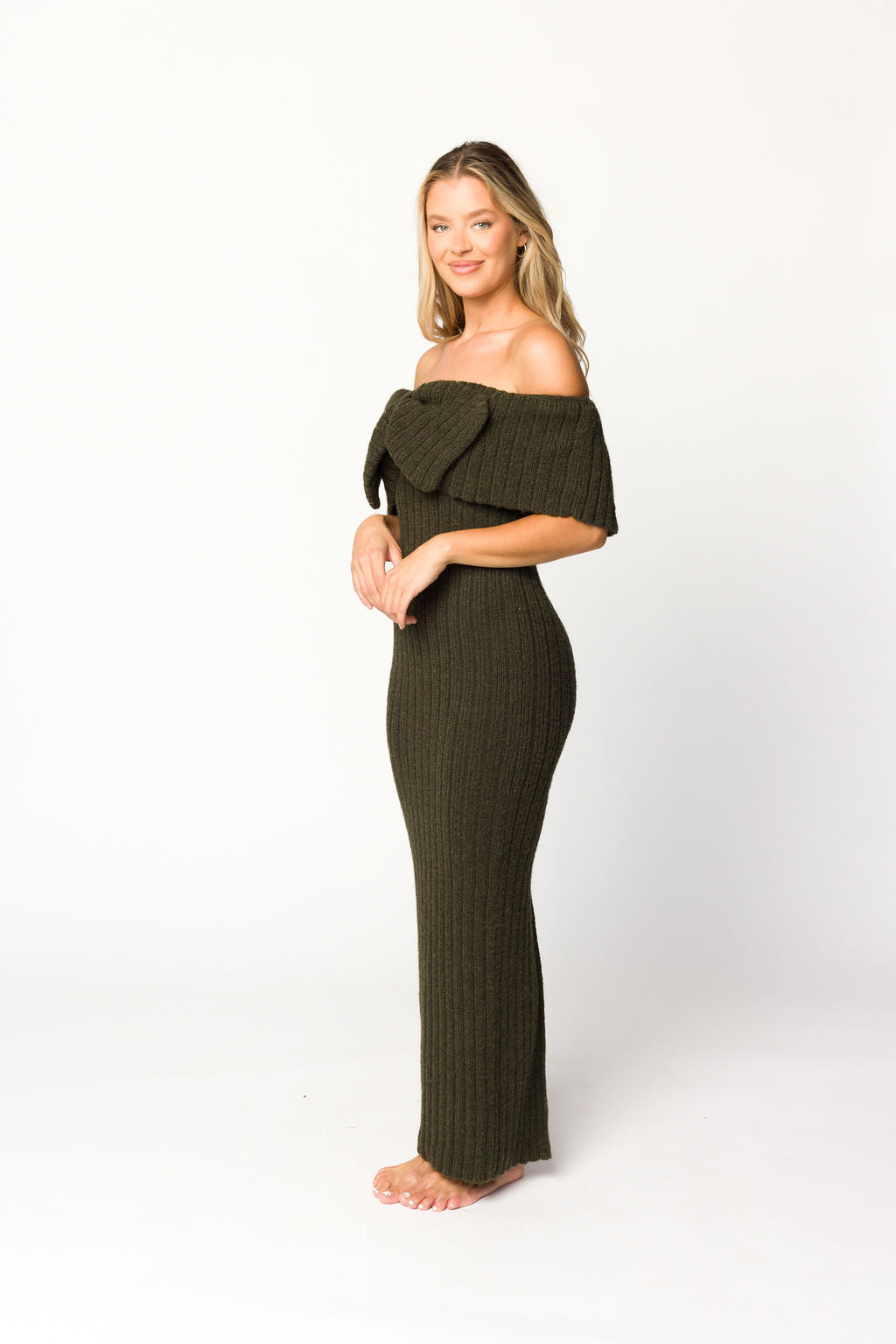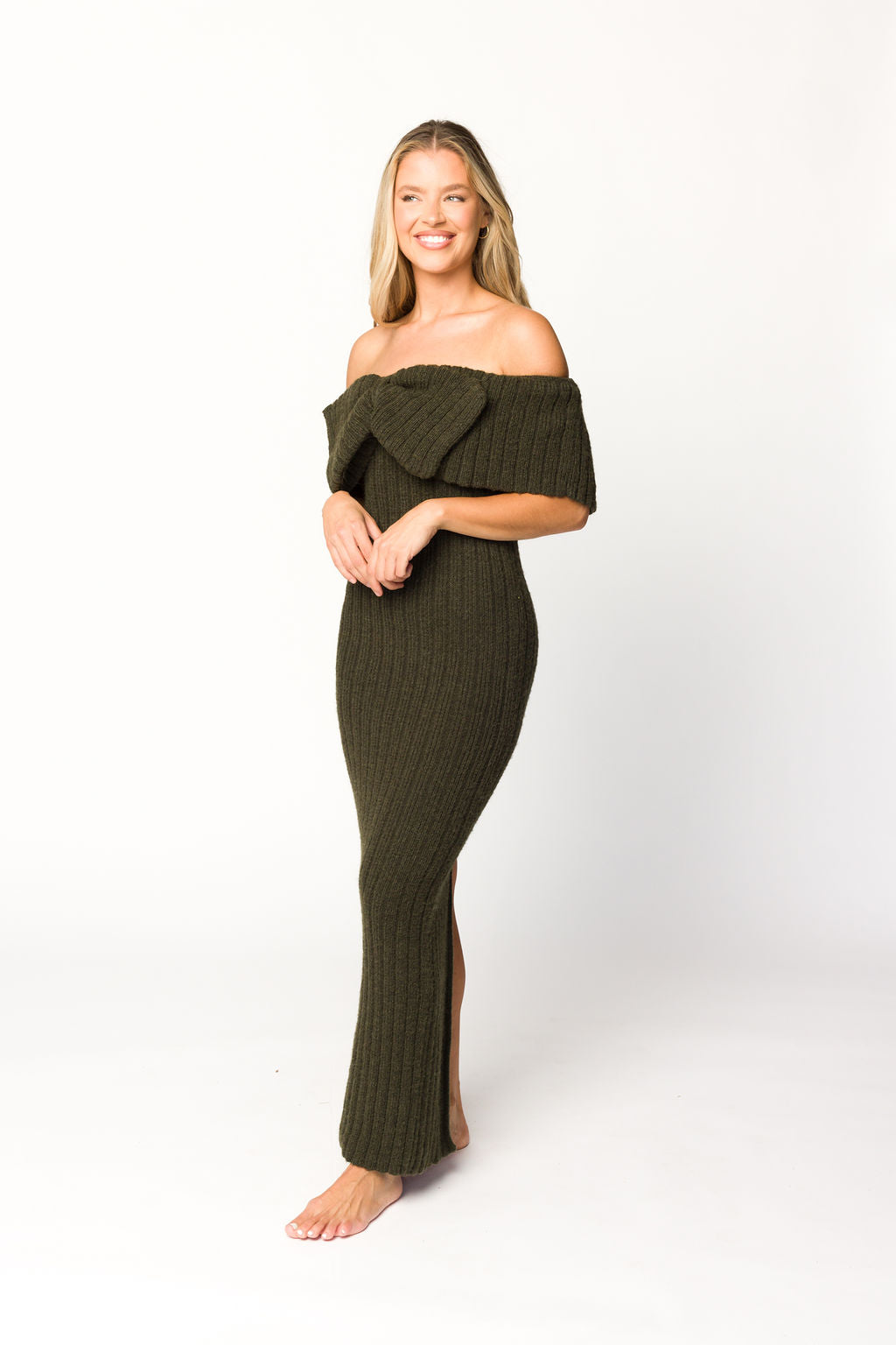 Aston Bow Front Maxi Sweater Dress in Dark Green - Bump Friendly