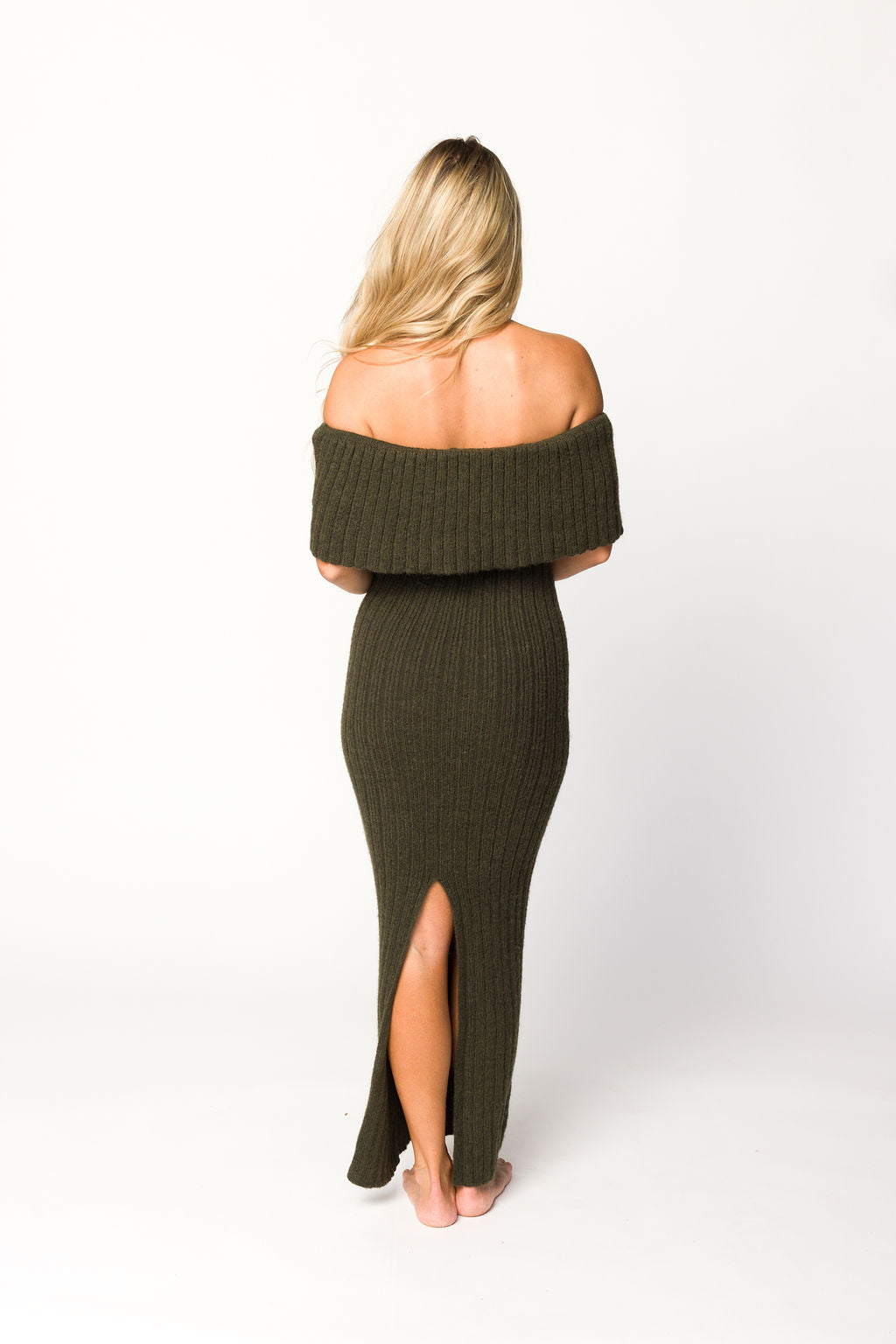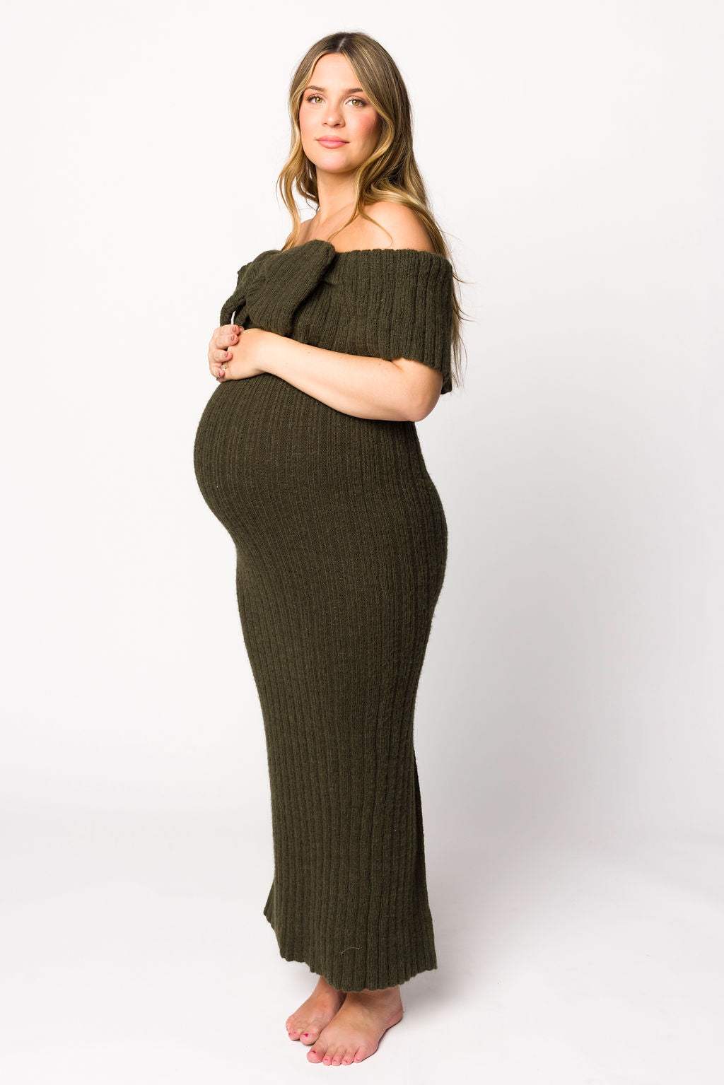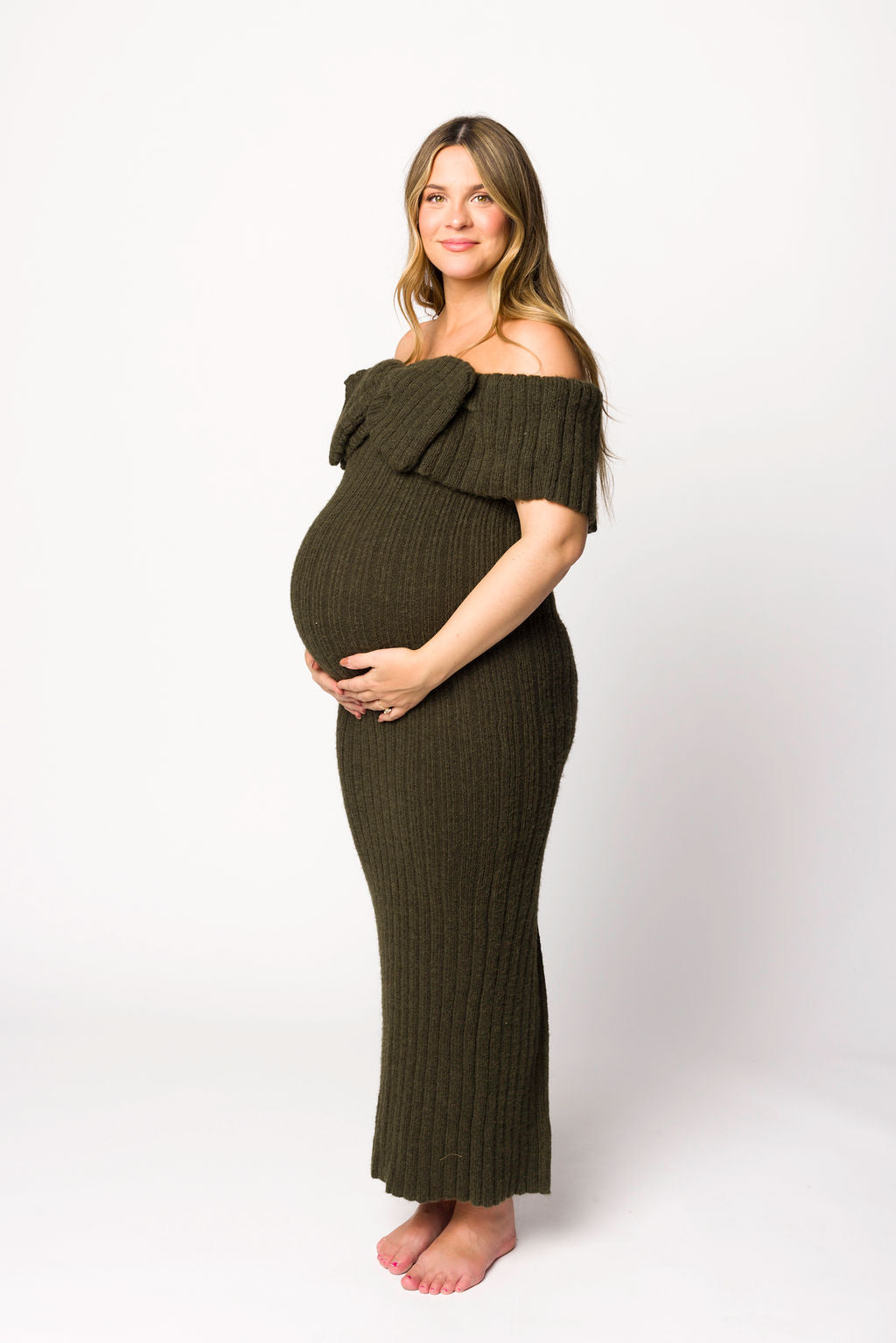 Aston Bow Front Maxi Sweater Dress in Dark Green - Bump Friendly