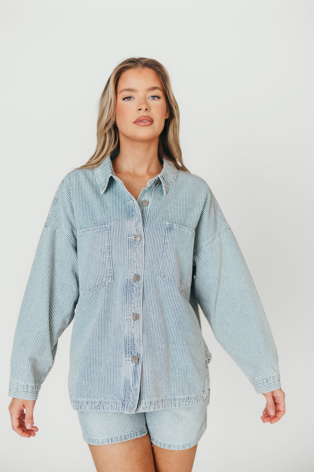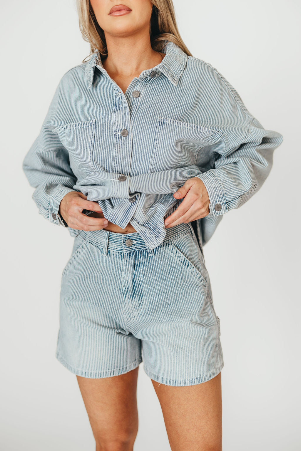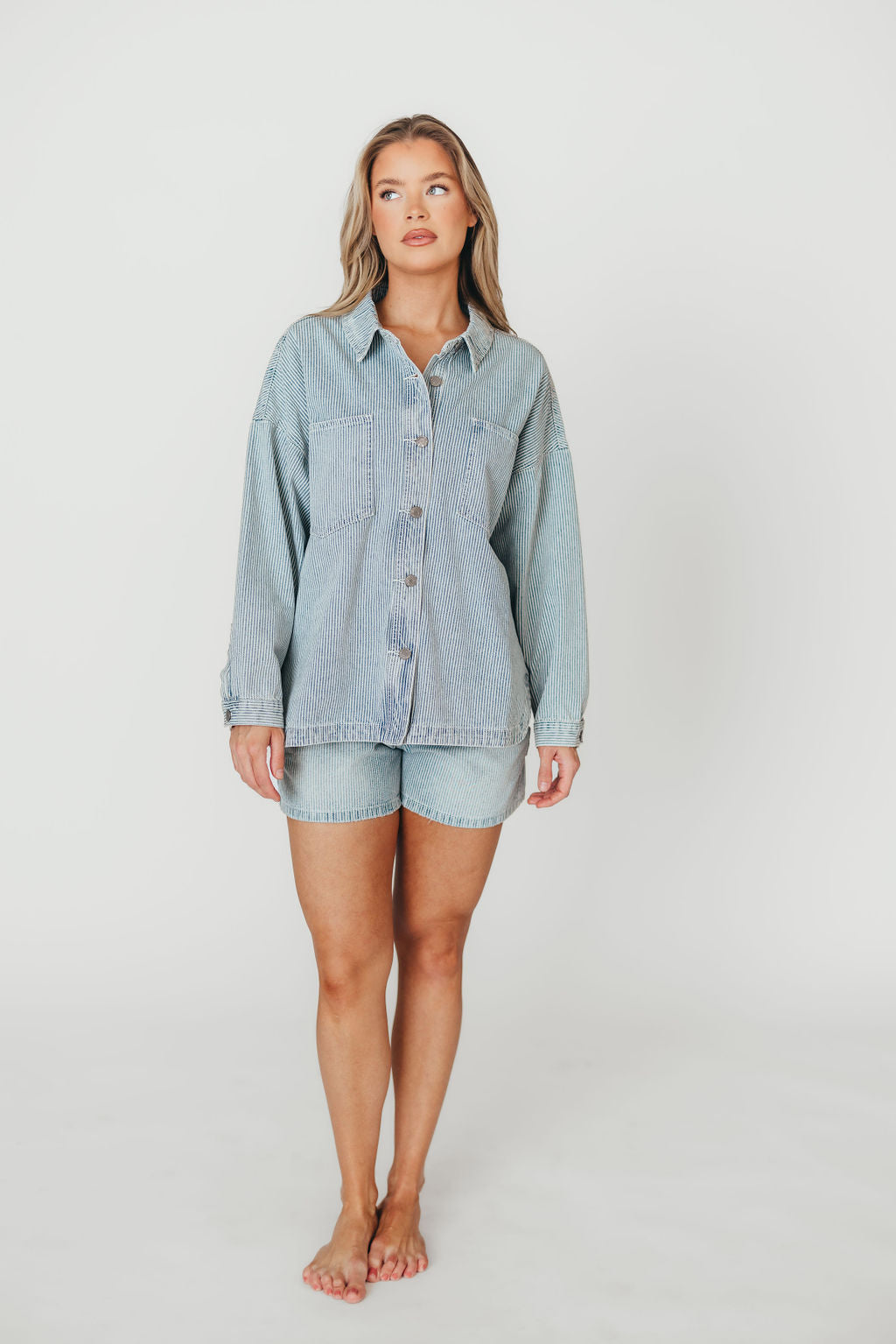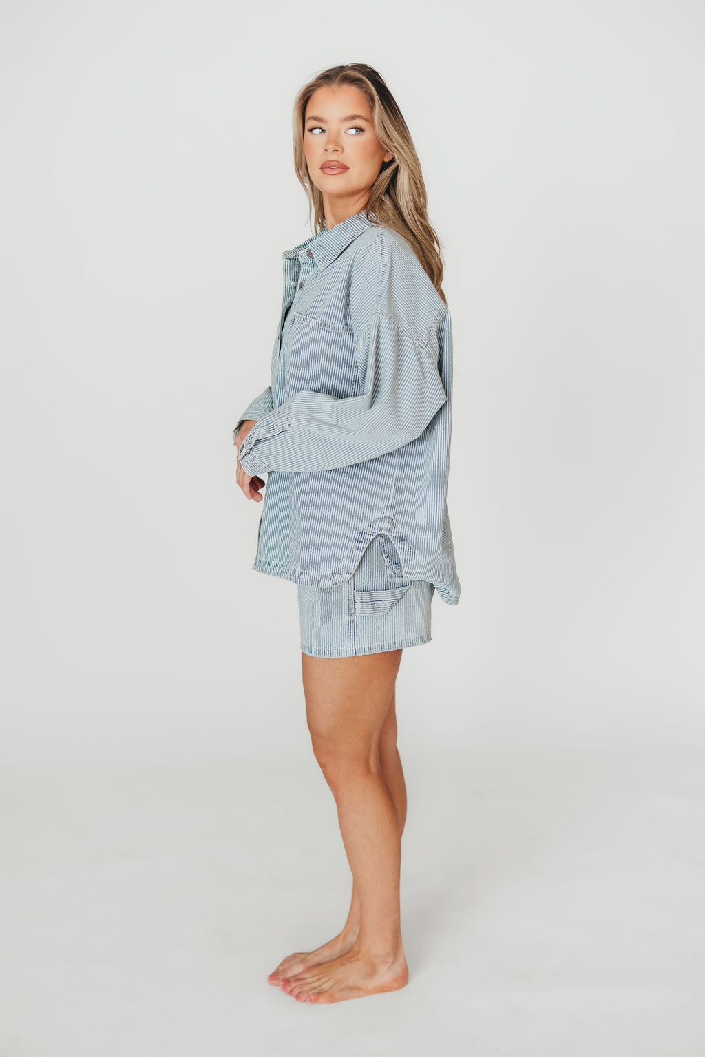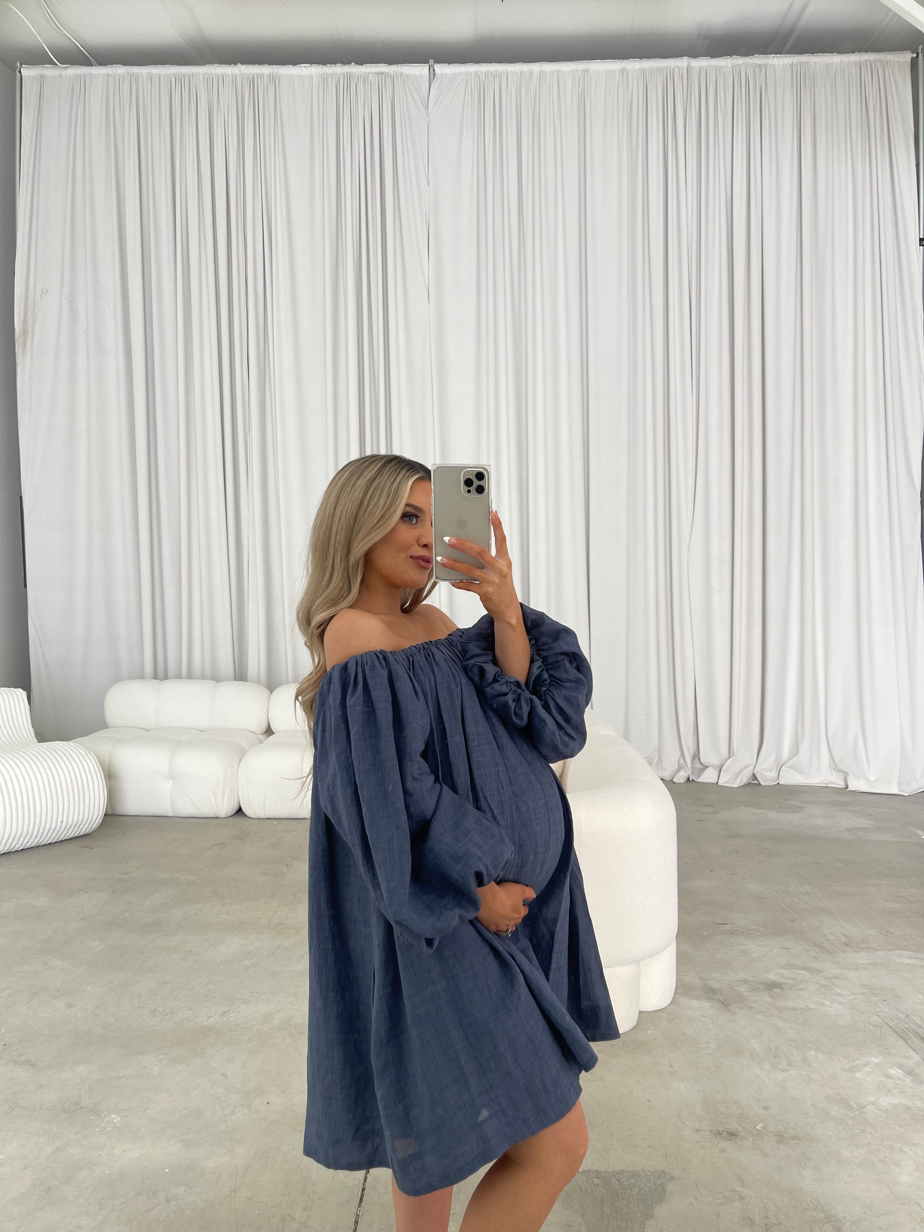 Cassidy 100% Linen On/Off Shoulder Mini Dress in Denim *Final-Sale*