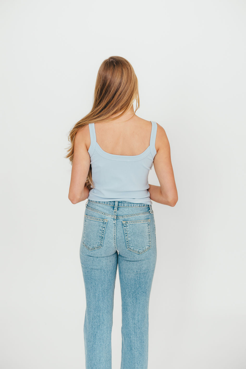 Tiffany 90s High-Rise Crisscross Waist Straight Jeans in Light Wash