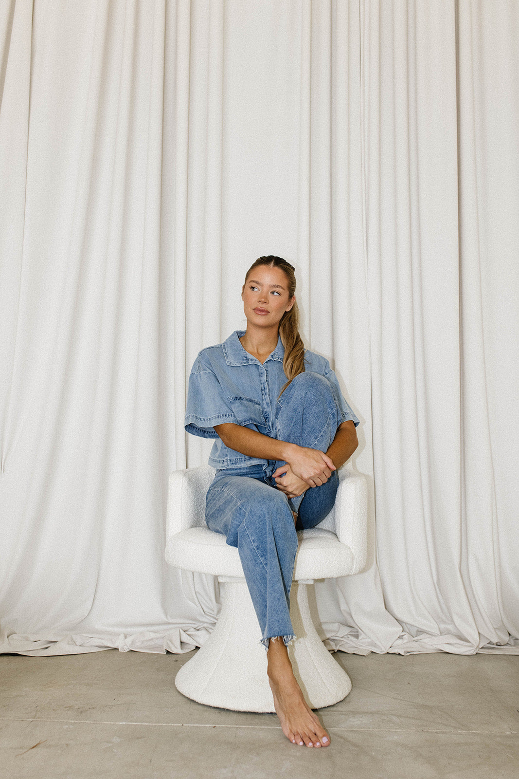 Midweek 100% Cotton Denim Jumpsuit in Ivory *Final-Sale*