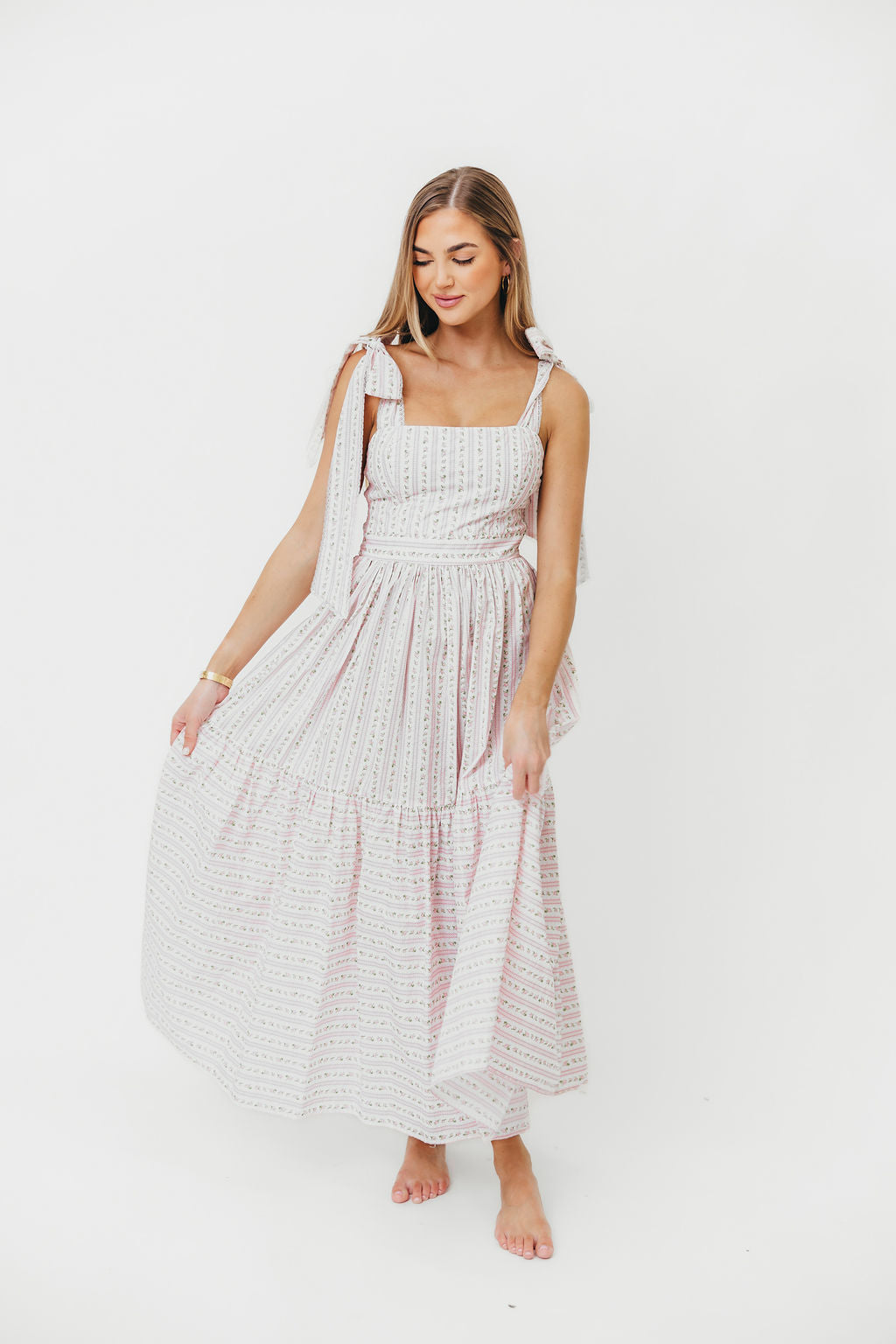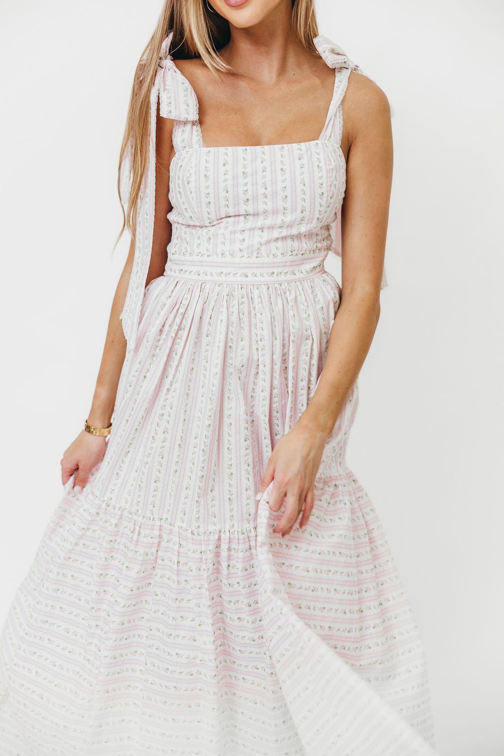 Garcelle Floral Tiered Midi Dress in Pink *Final-Sale*