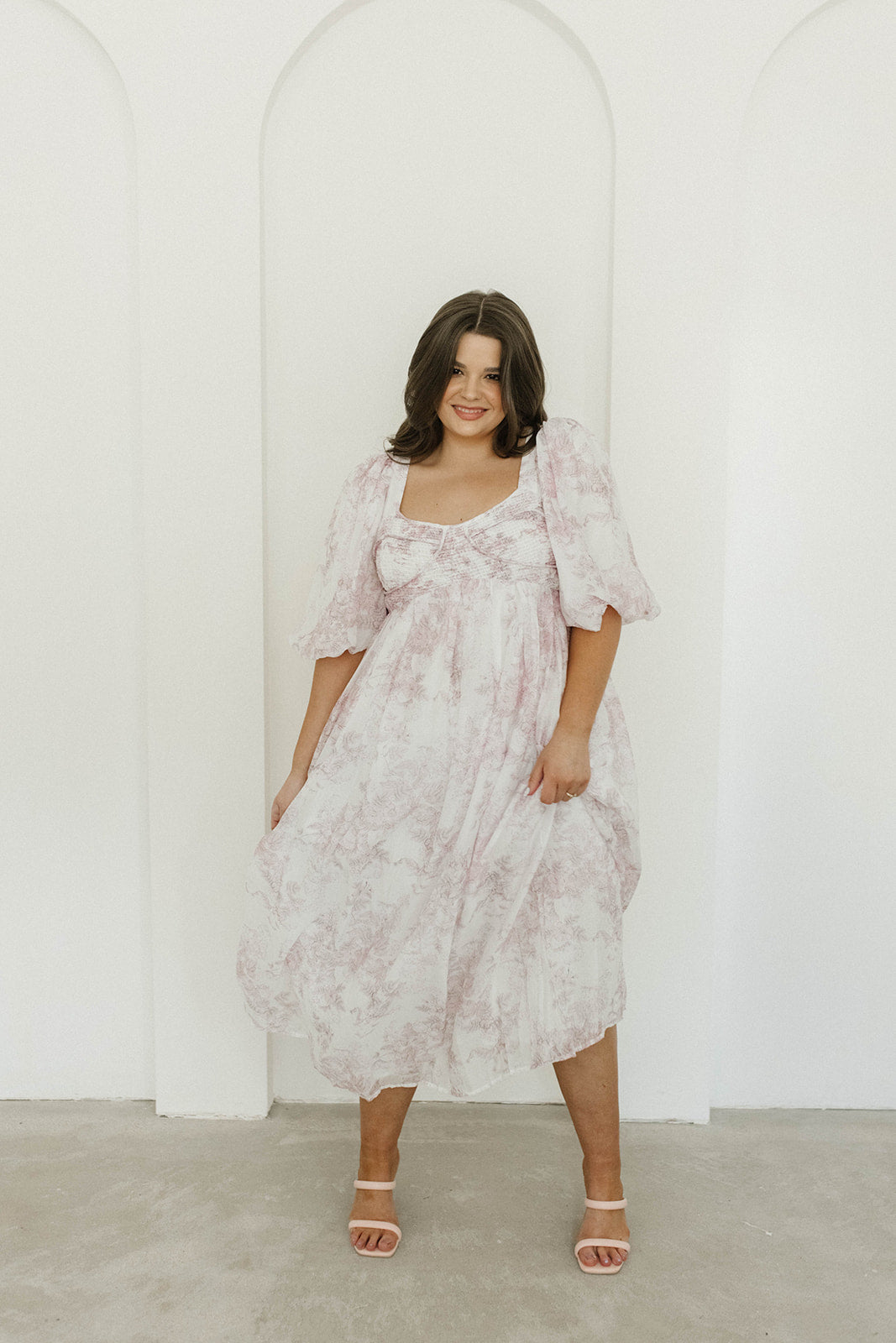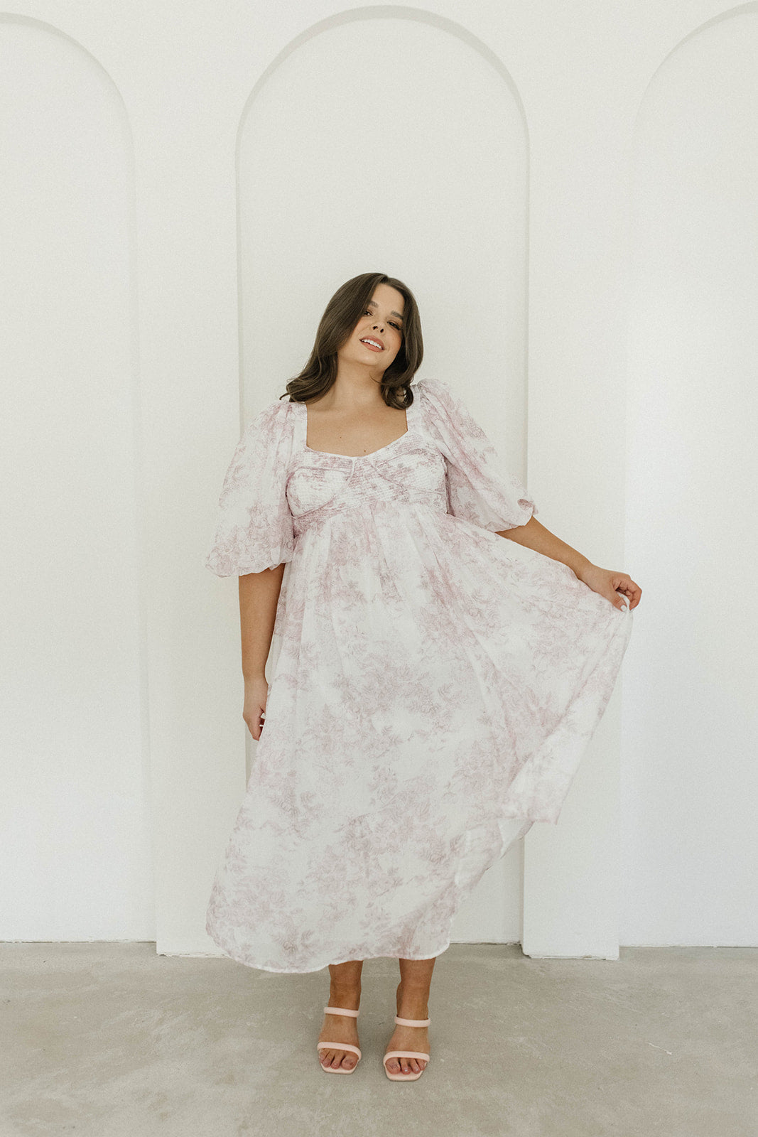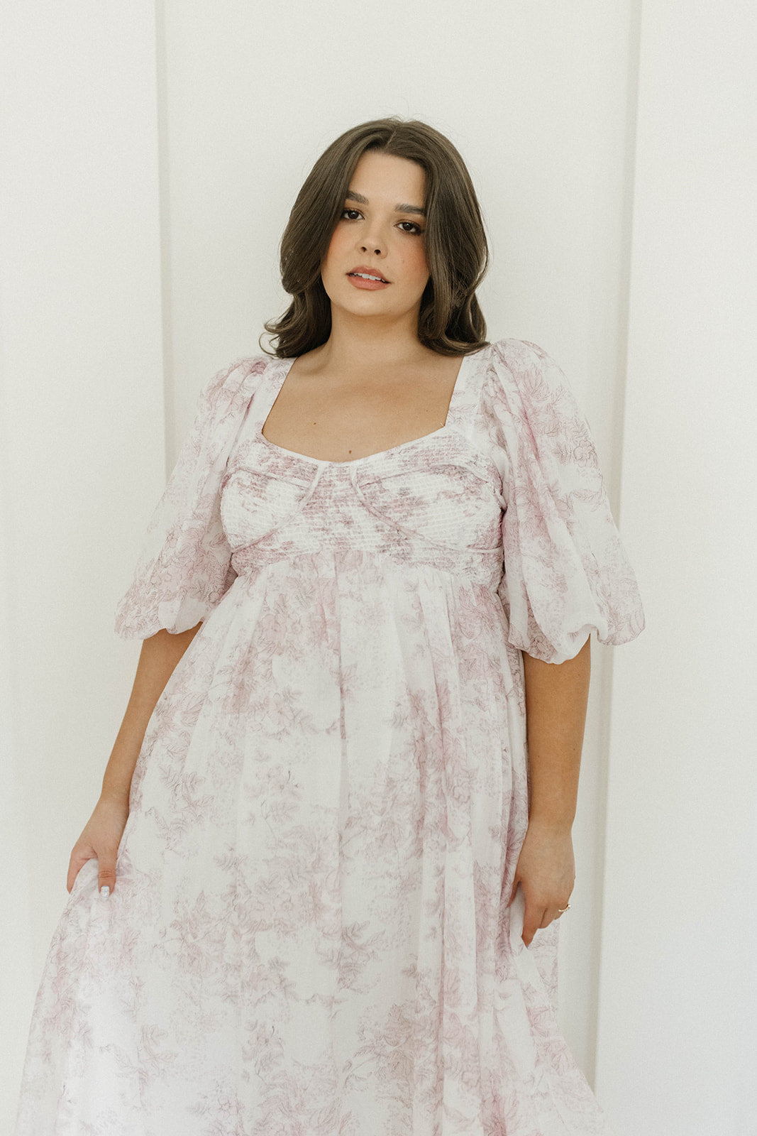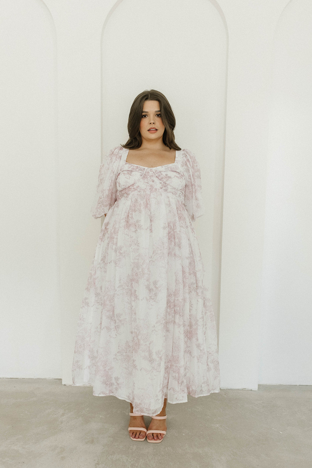 Harlow Midi Dress in Light Pink Floral - Bump Friendly & Inclusive Sizing (S-3XL)