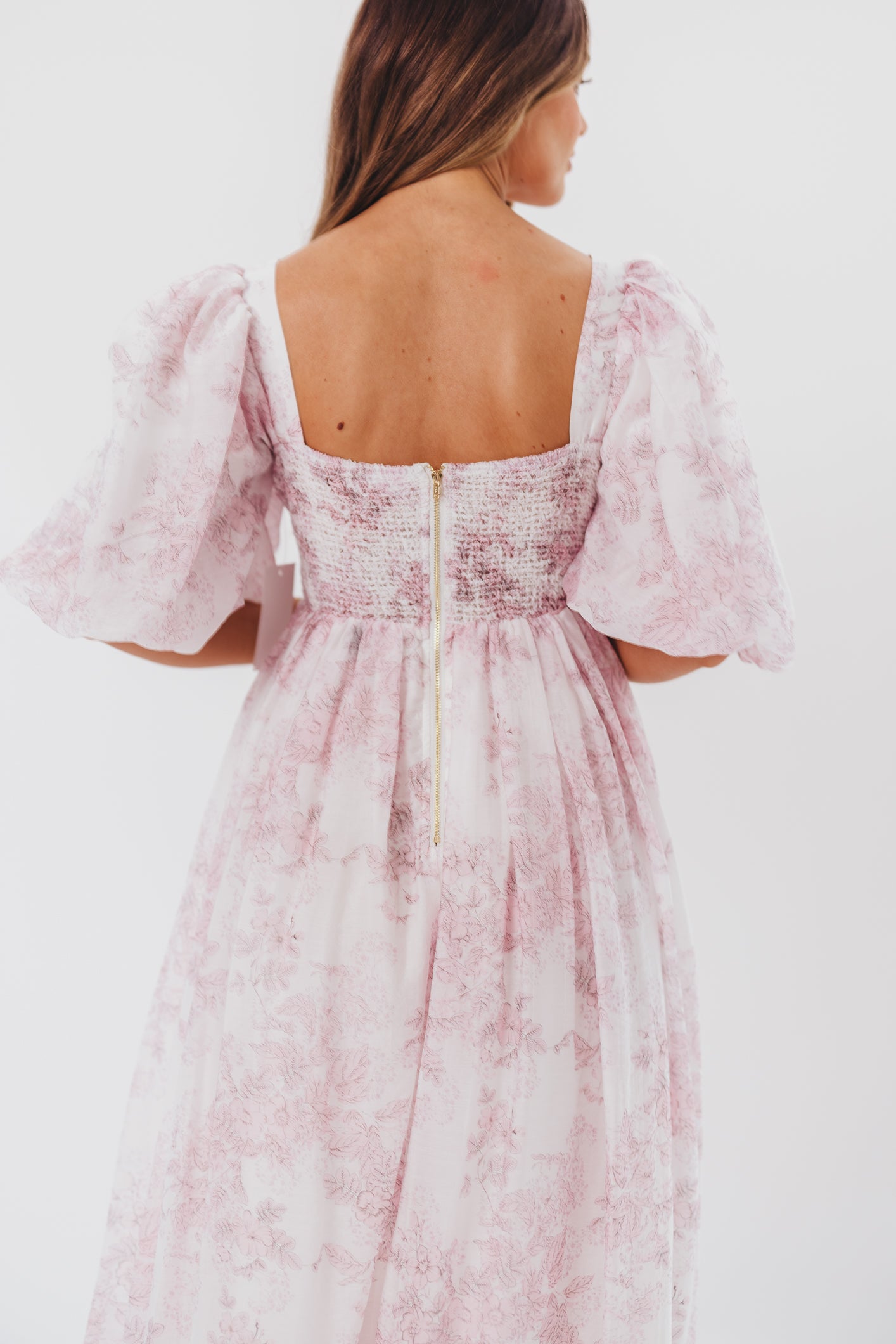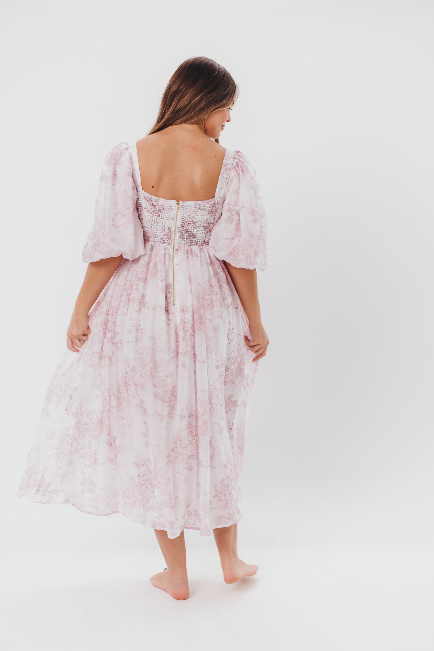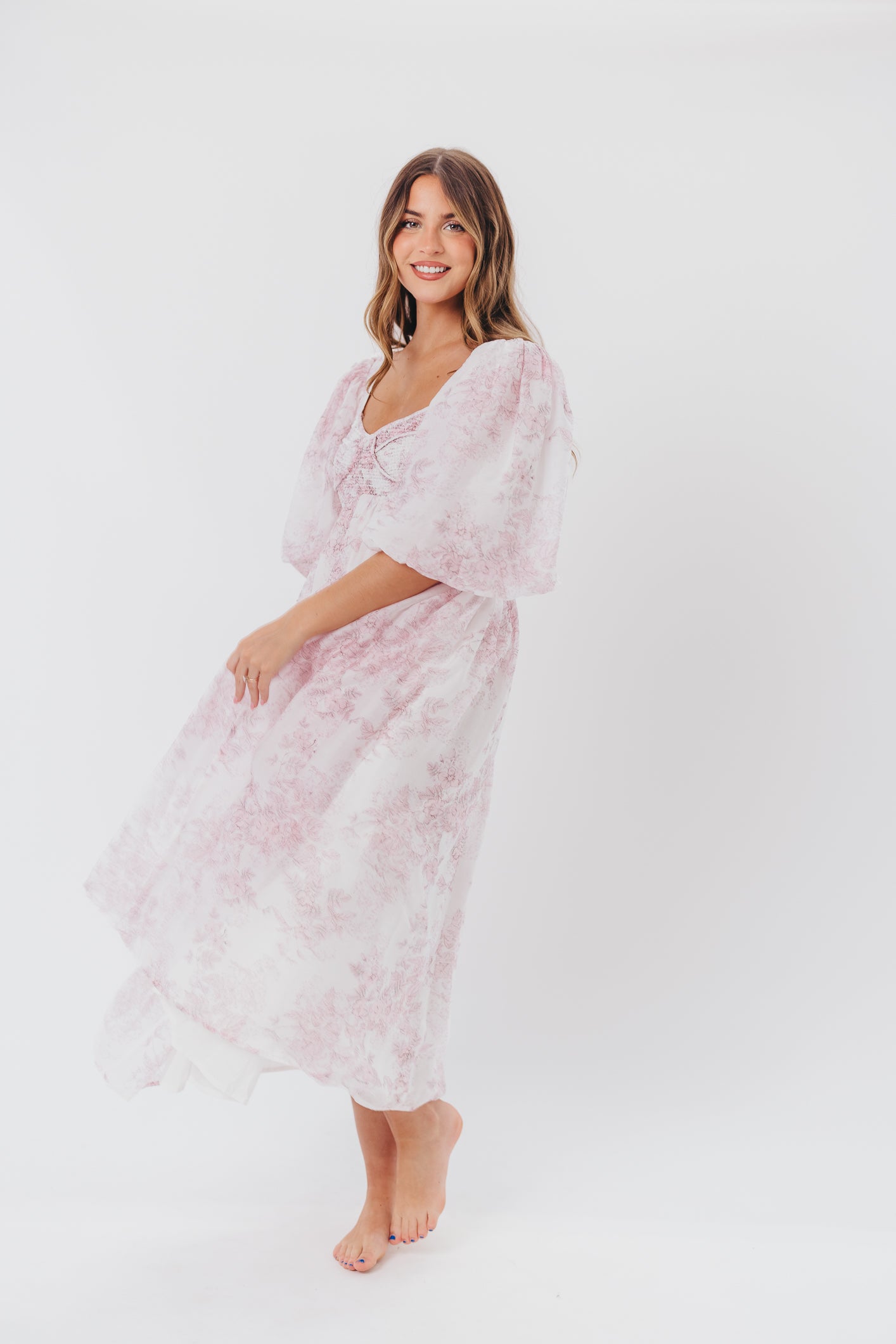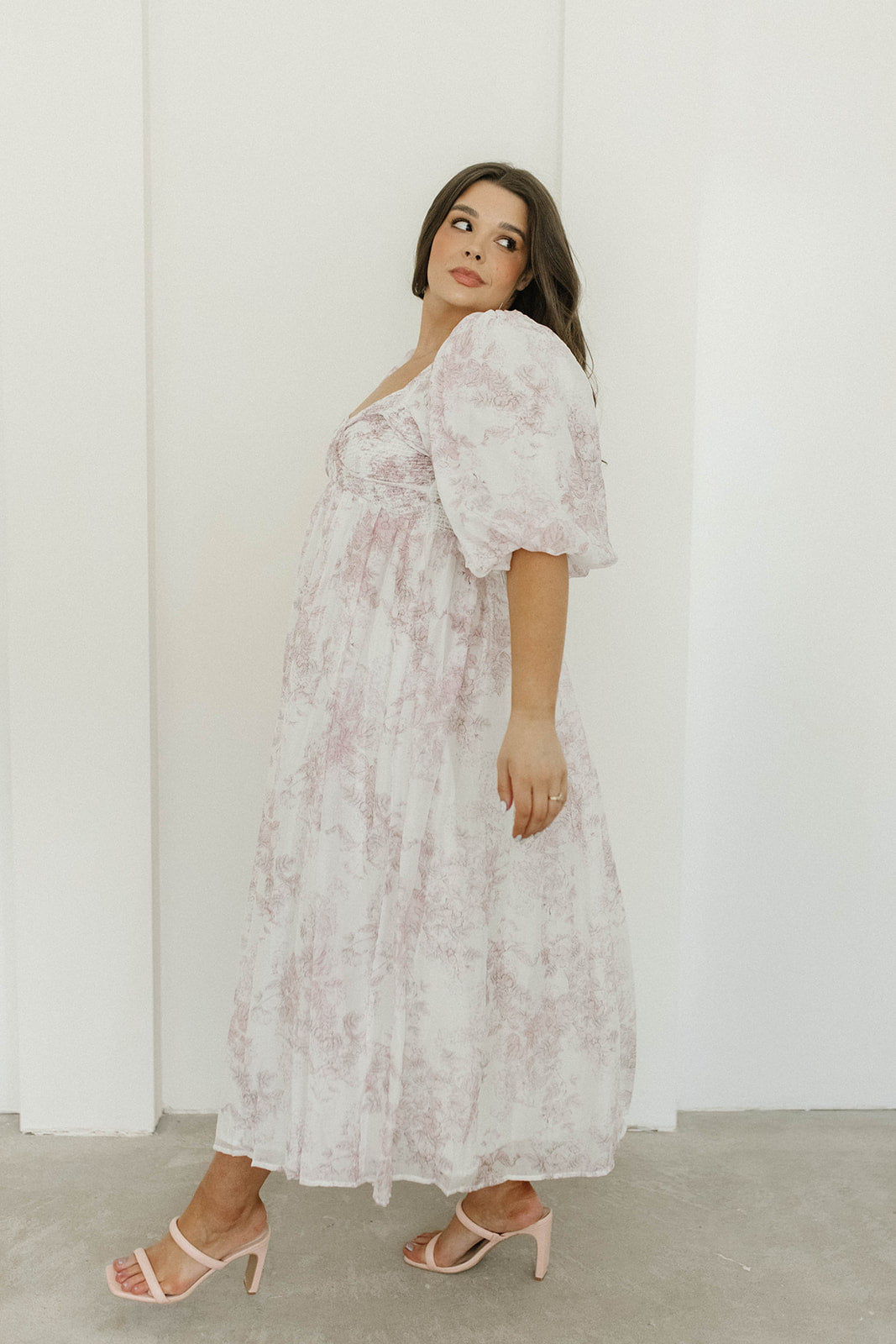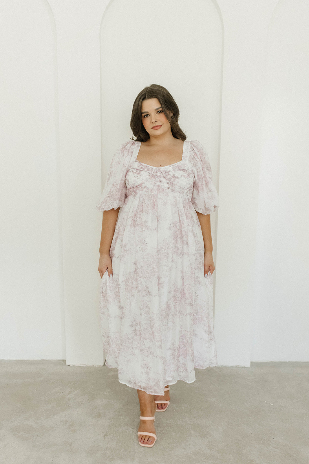 Harlow Midi Dress in Light Pink Floral - Bump Friendly & Inclusive Sizing (S-3XL)