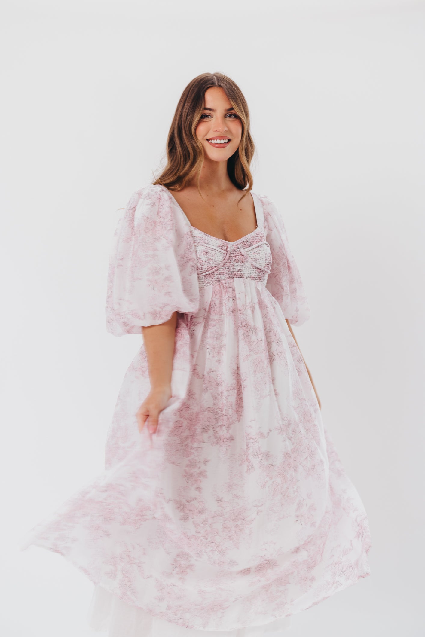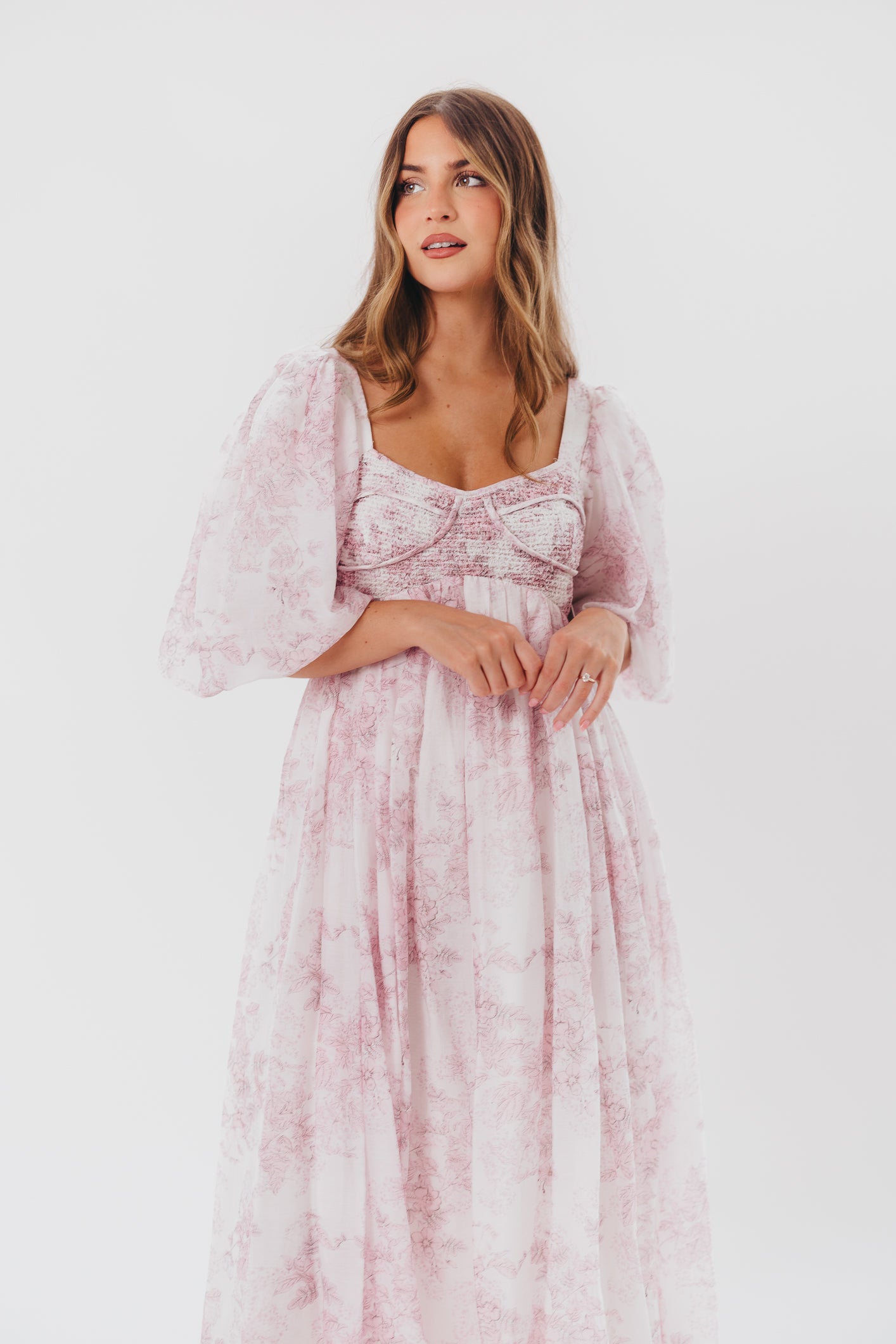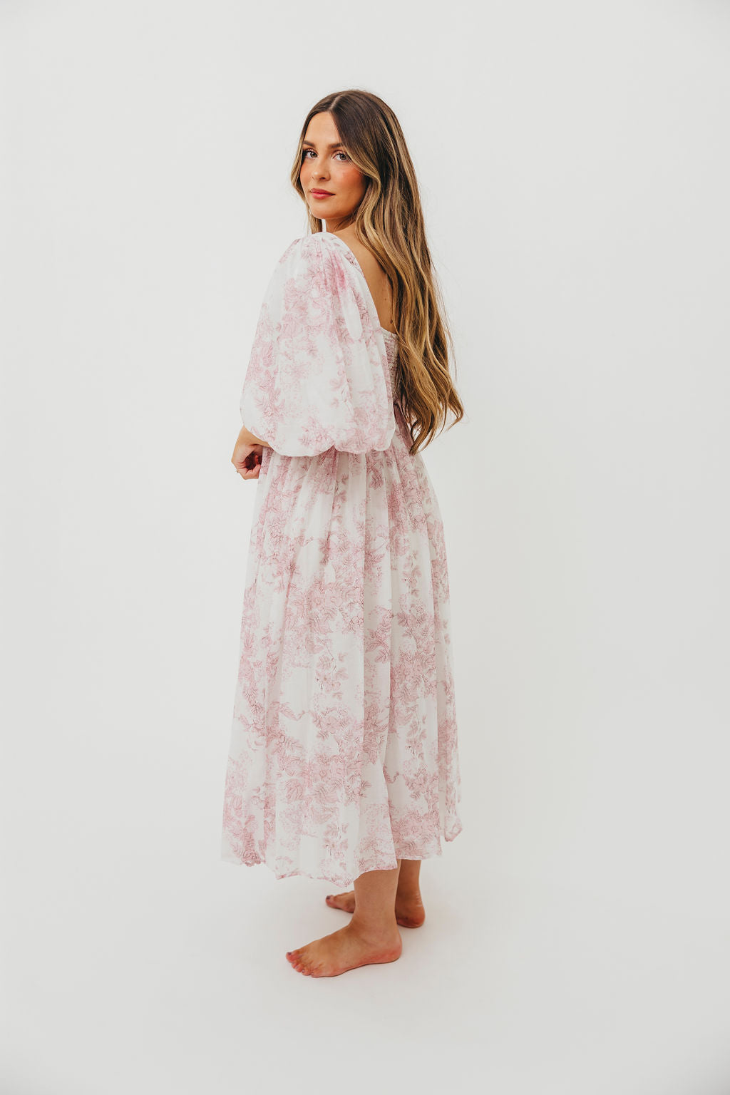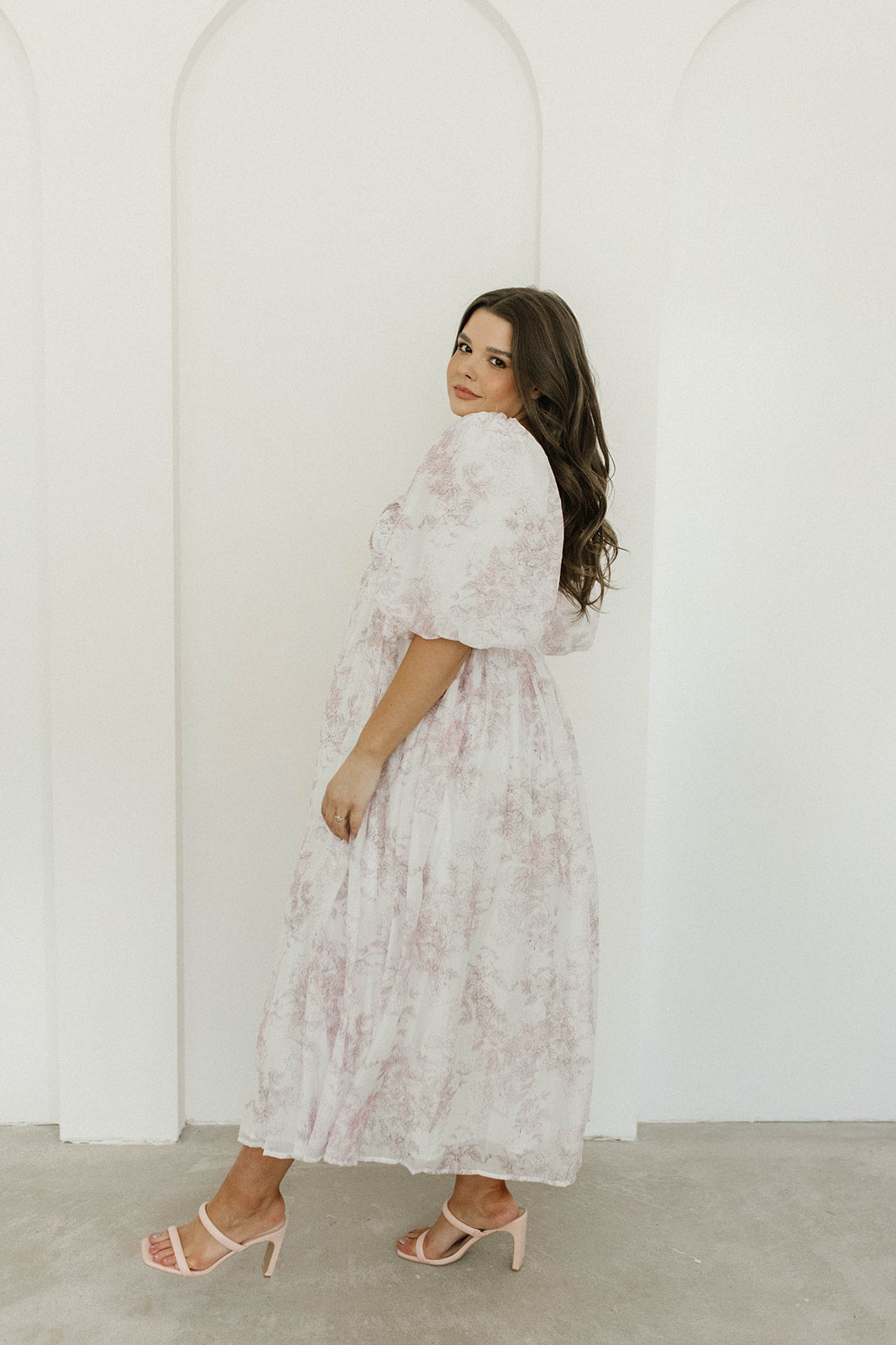 Harlow Midi Dress in Light Pink Floral - Bump Friendly & Inclusive Sizing (S-3XL)