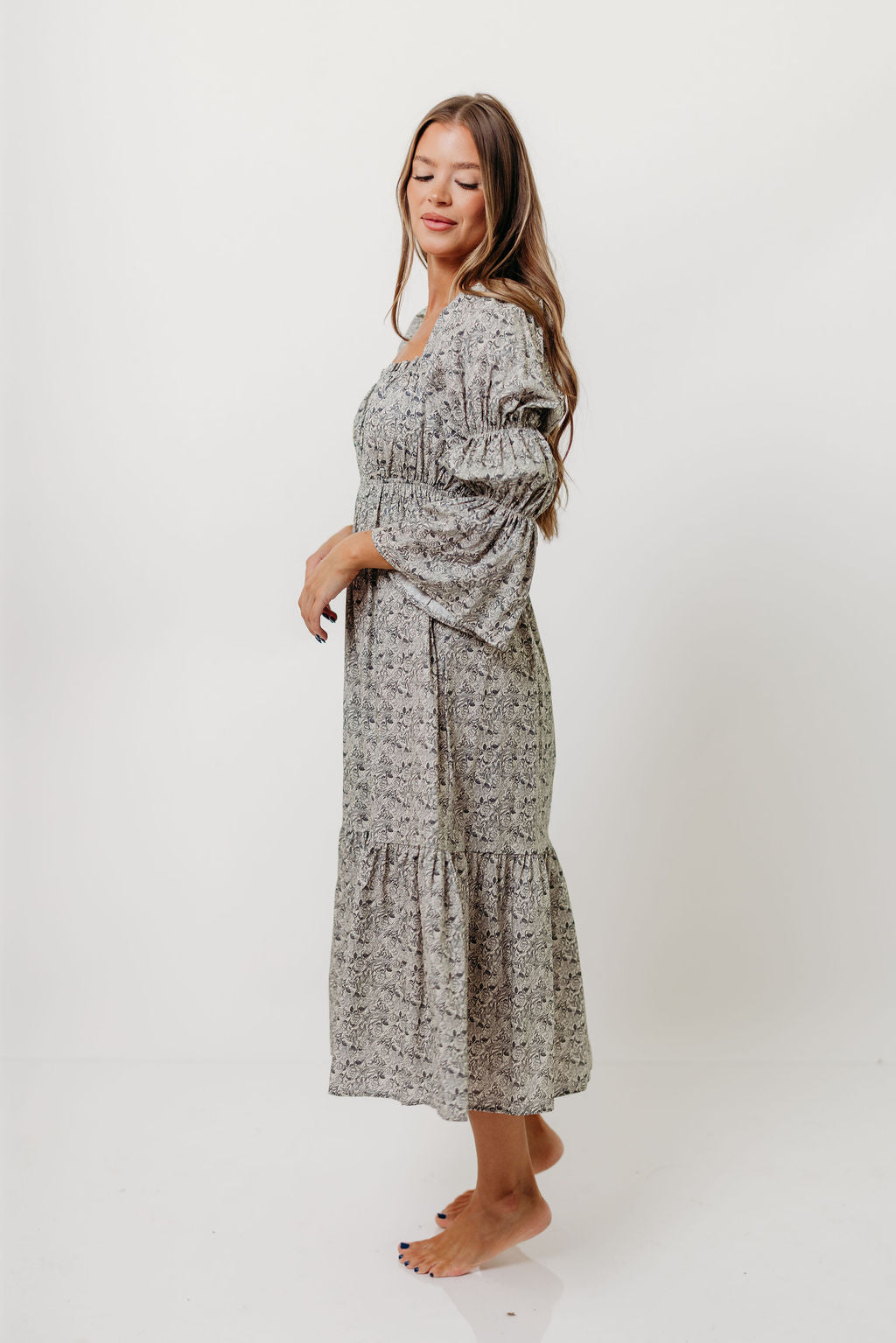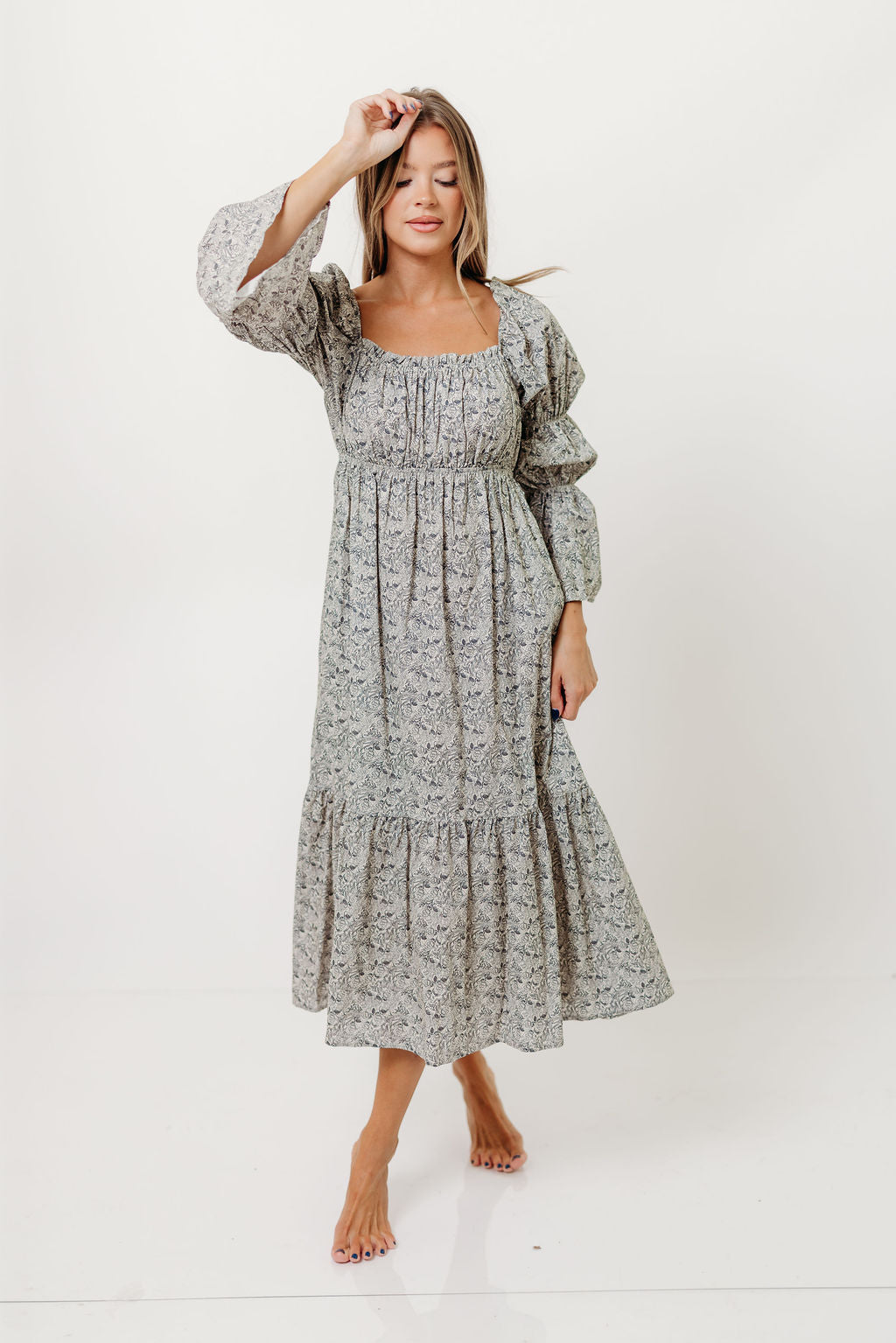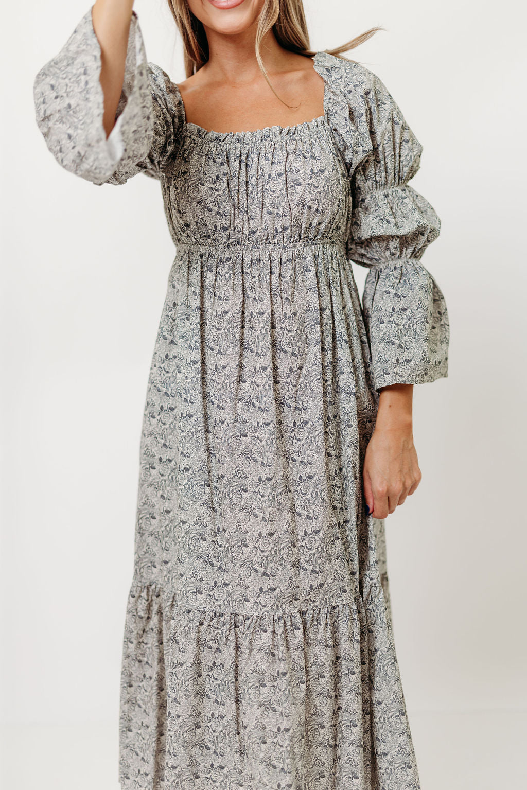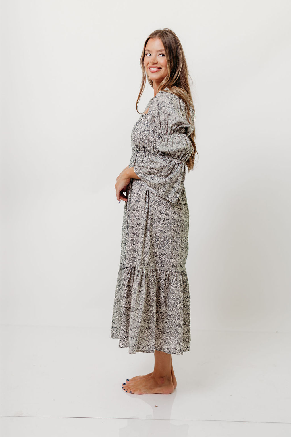 Amy Floral Long Sleeve Maxi Dress in Mocha Multi - Bump Friendly