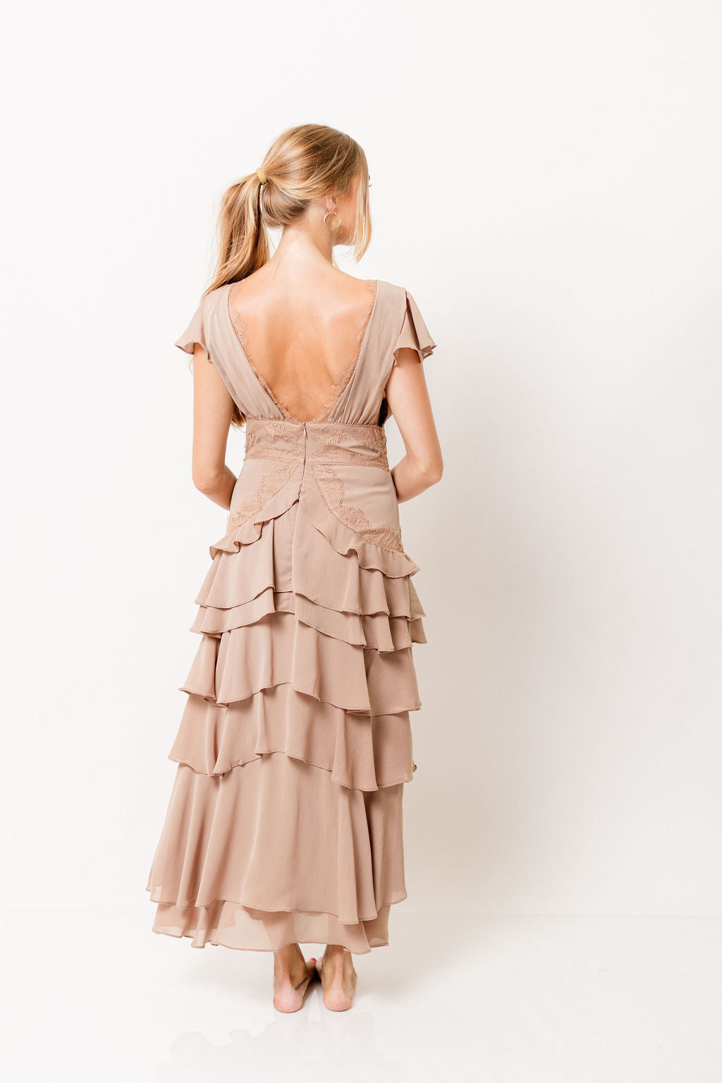 Jessa Tiered Ruffle Midi Dress in Mocha *Final Sale*