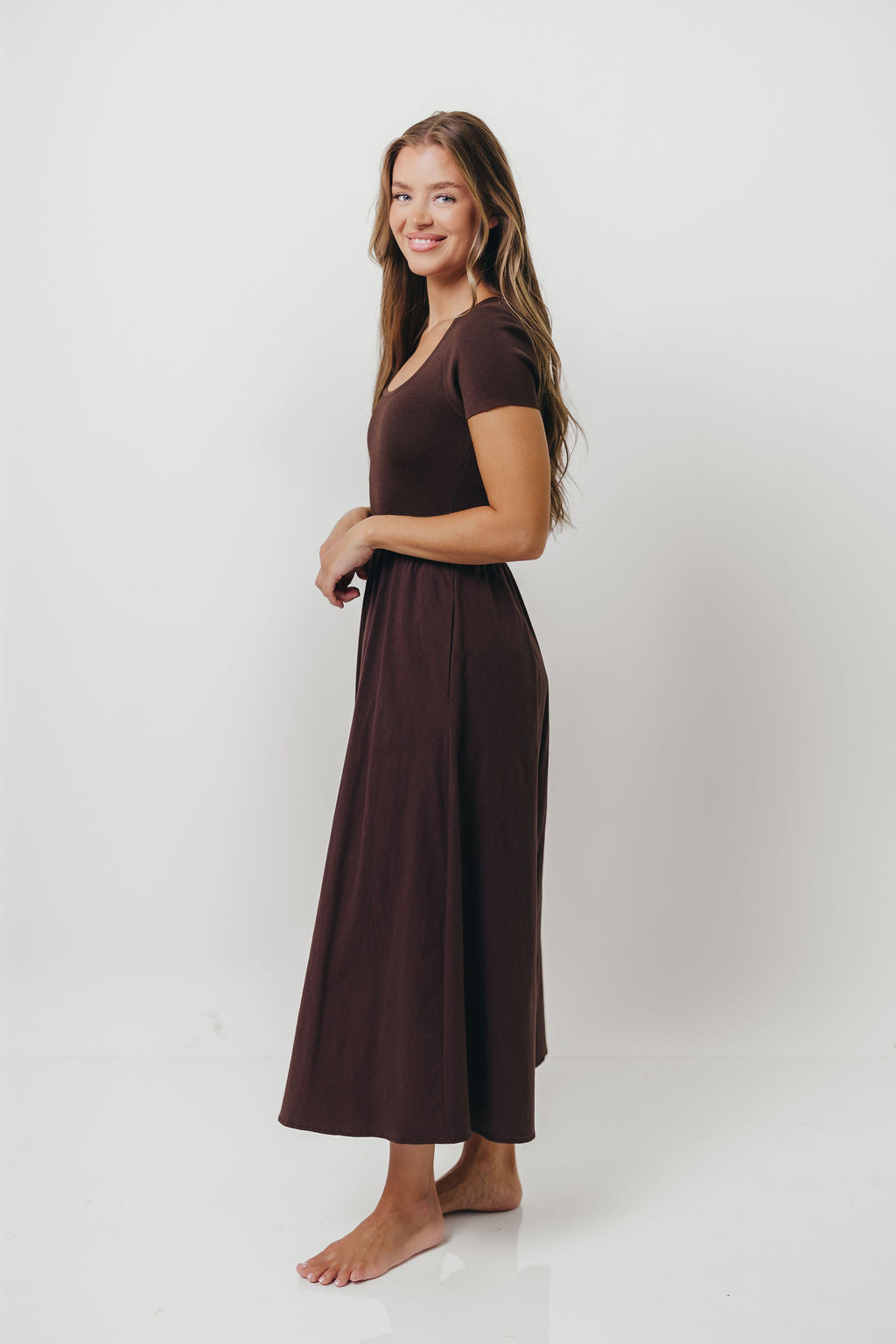 Candace Woven Linen Maxi Dress in Mocha - Bump Friendly