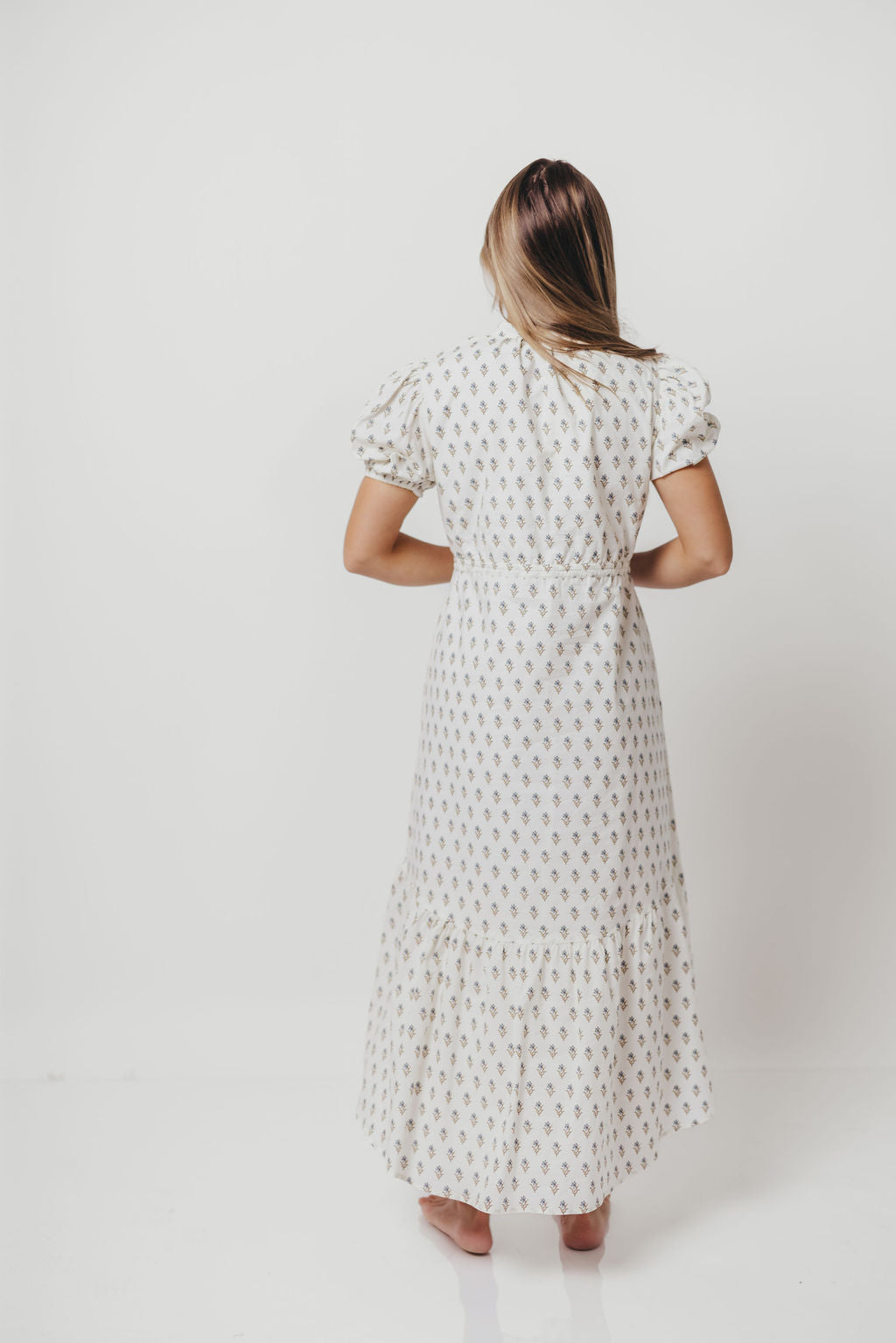 Julianna 100% Cotton Floral Print Tiered Midi Dress in Cream/Dark Navy