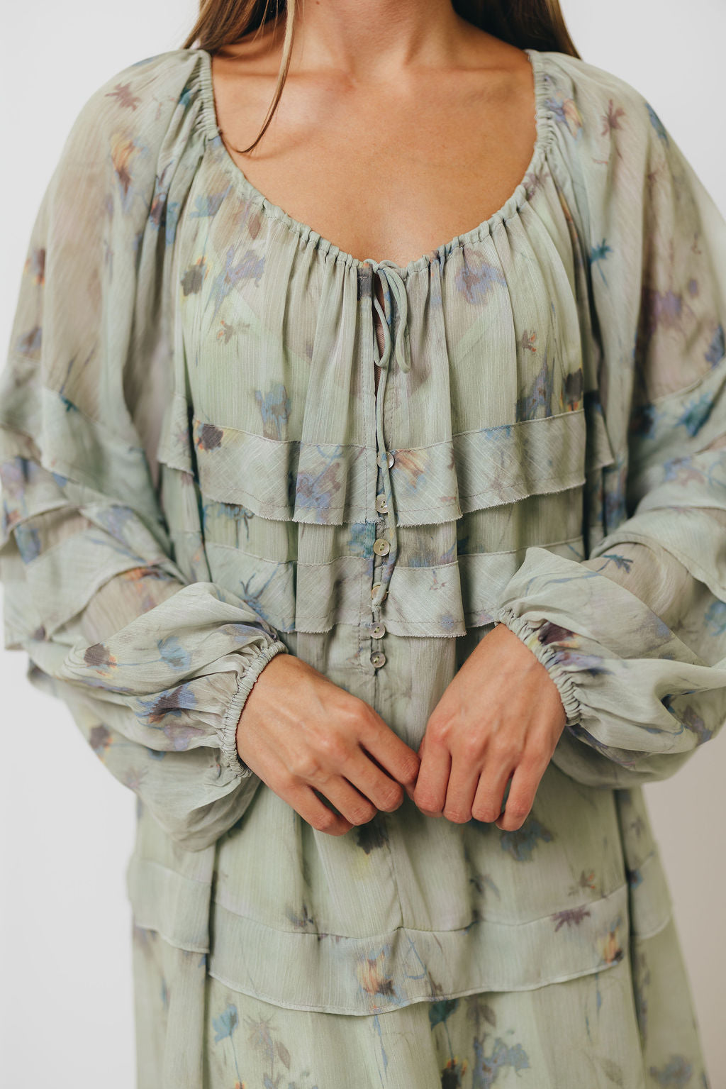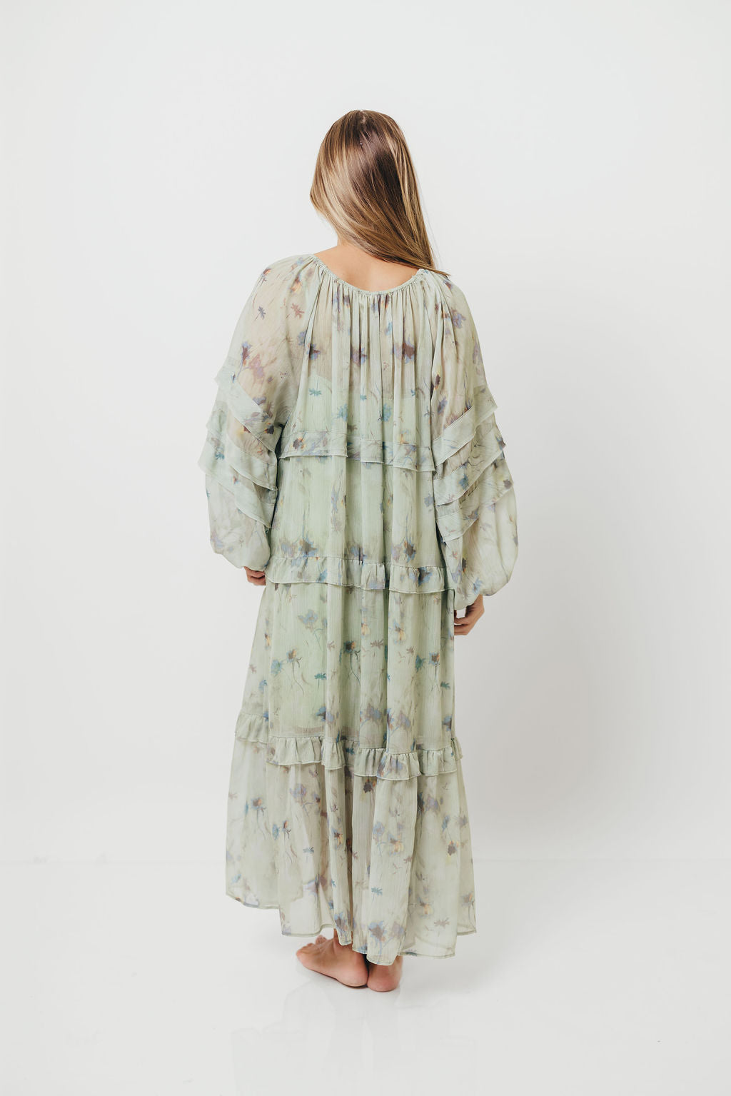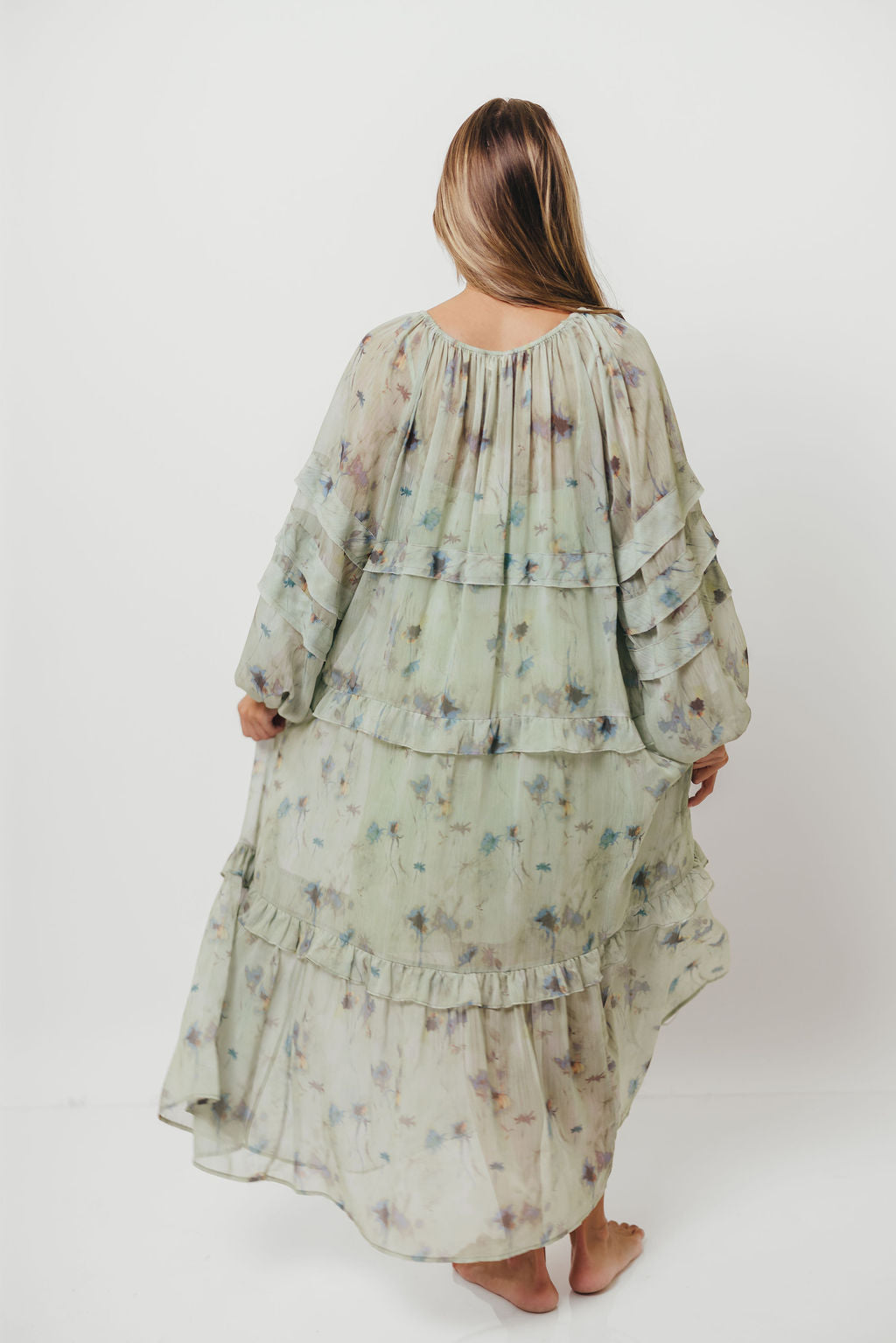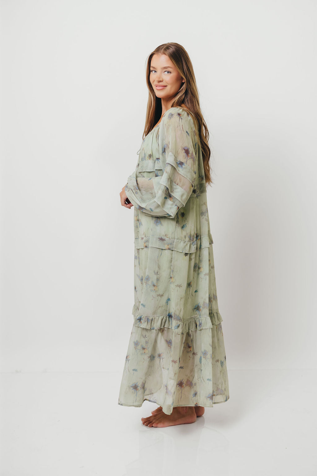 Wildwood Ruffled Maxi Dress in Sage Multi with Detachable Liner *Final Sale*