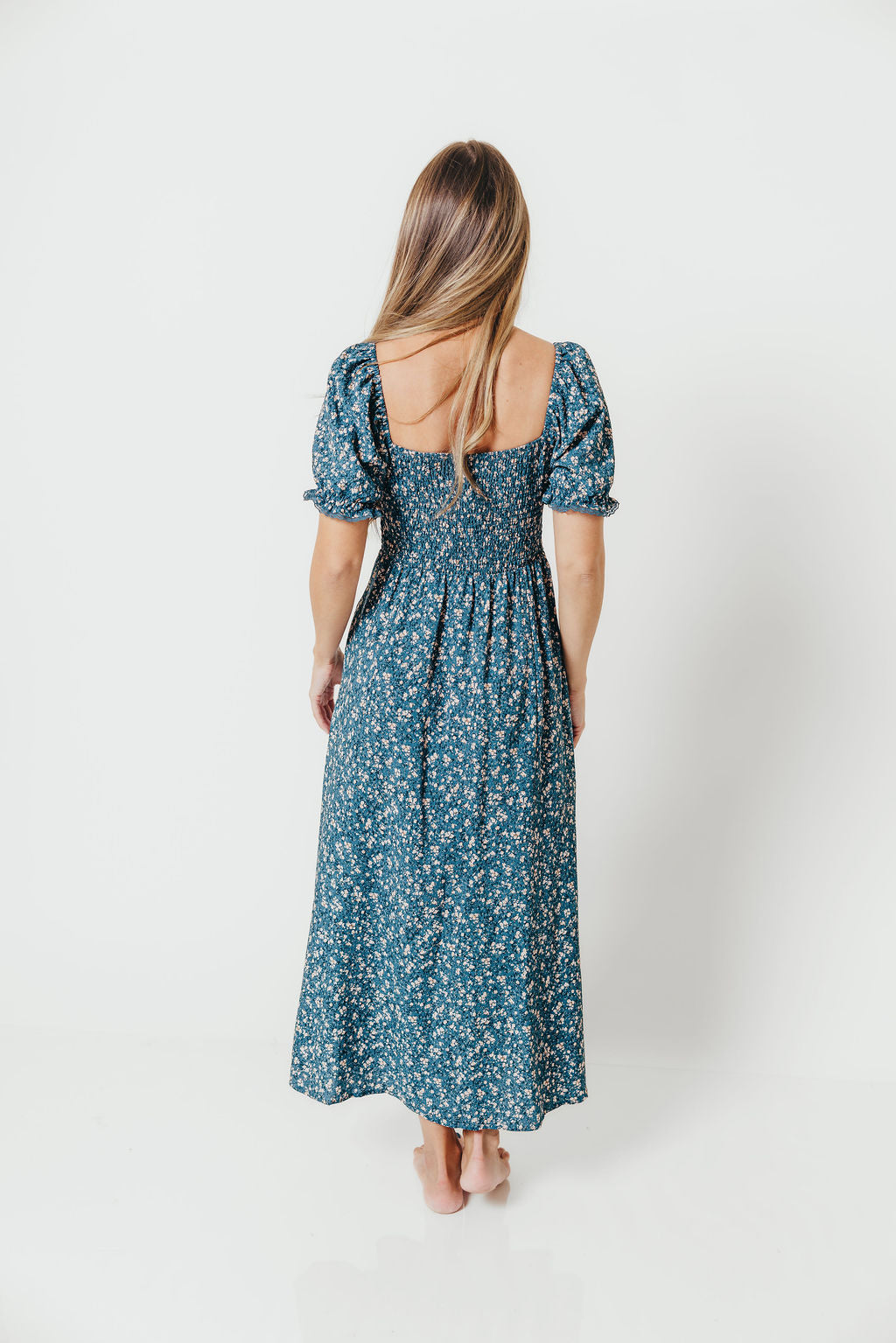 Katy Pleated Bodice Maxi Dress in Deep Teal - Bump Friendly