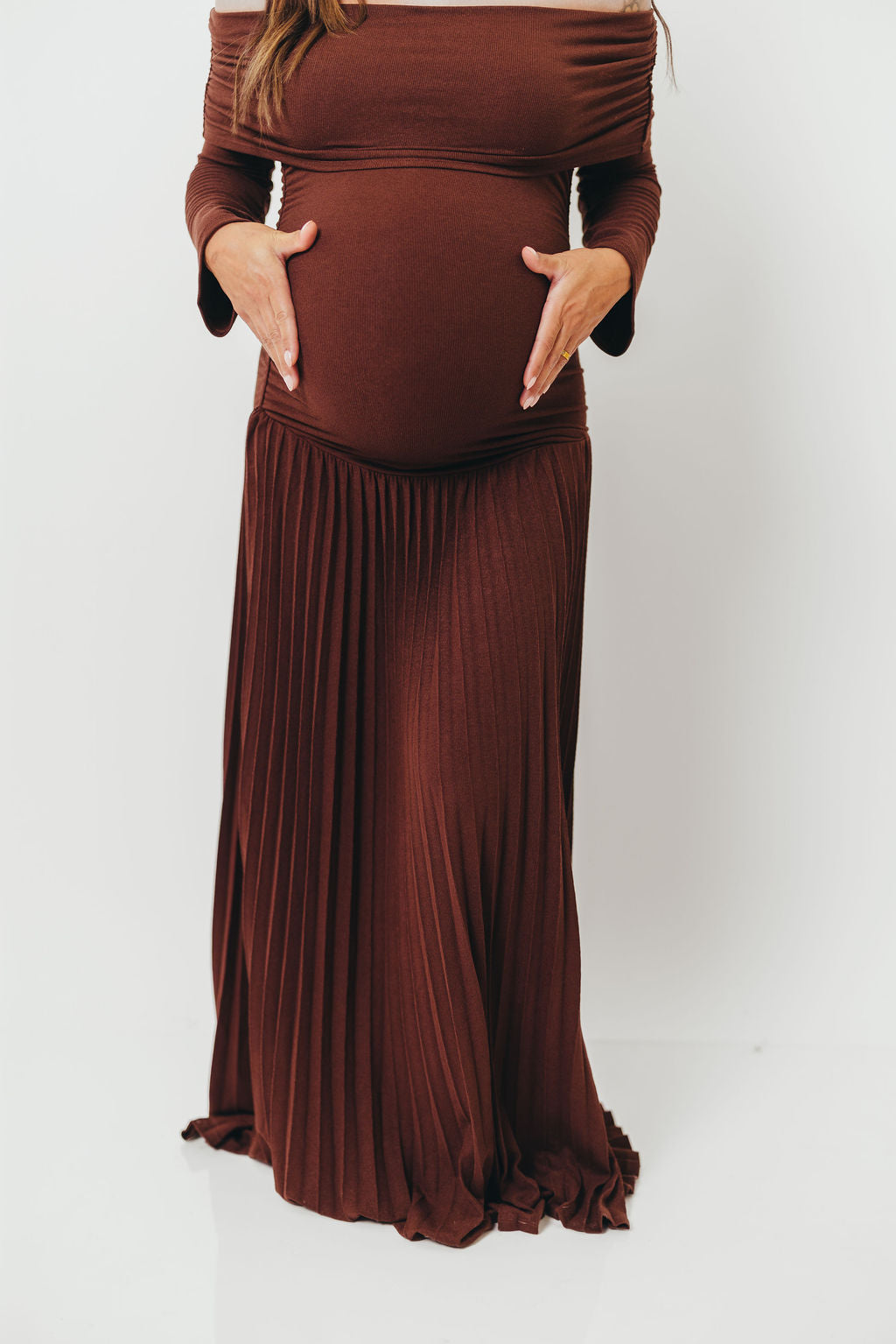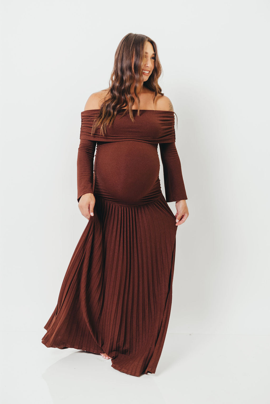 Lennox Long Sleeve Maxi Dress in Brown - Bump Friendly *Final Sale*